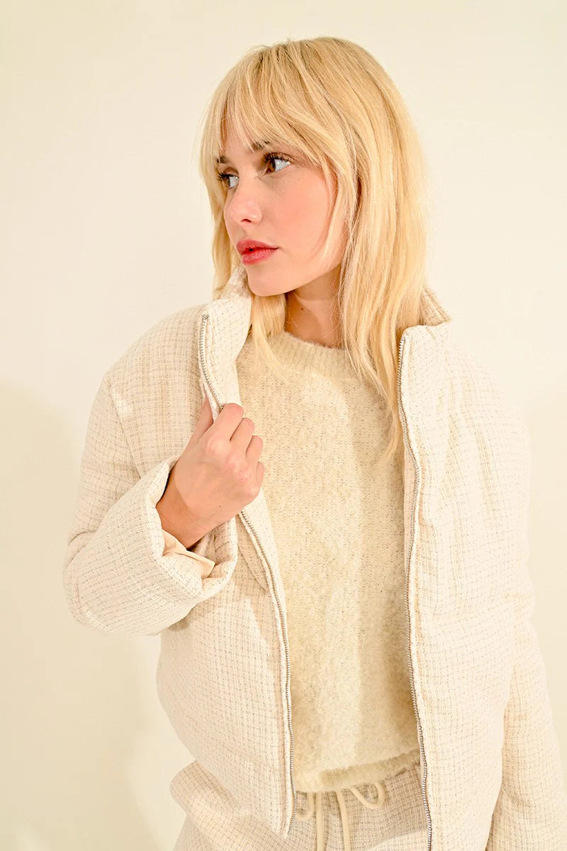 Molly Bracken Piumino in VellutoO Tweed Bianco