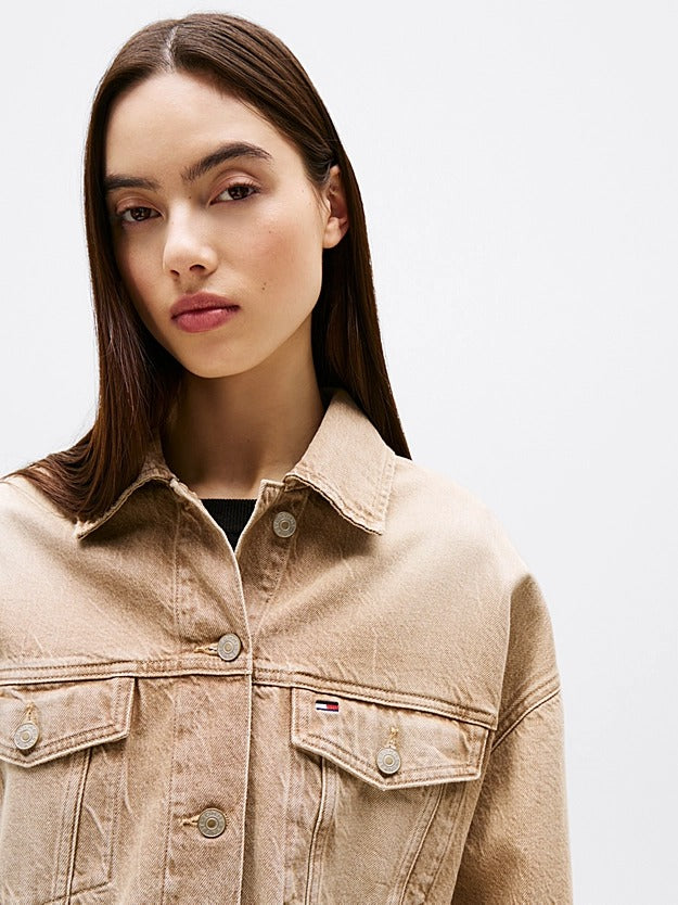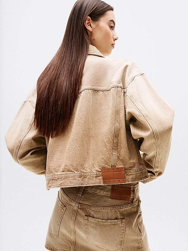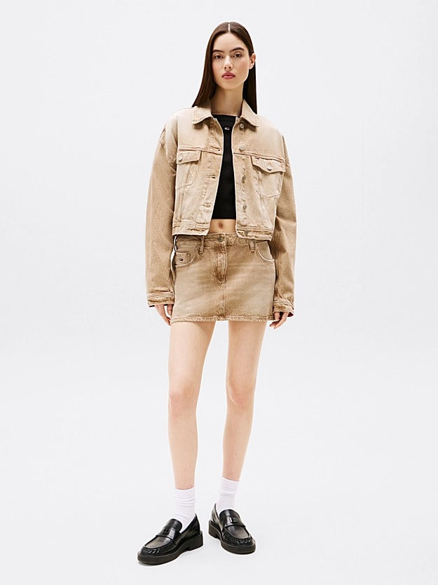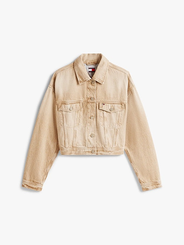 Tommy Jeans Giacca Trucker Crop in Denim Beige