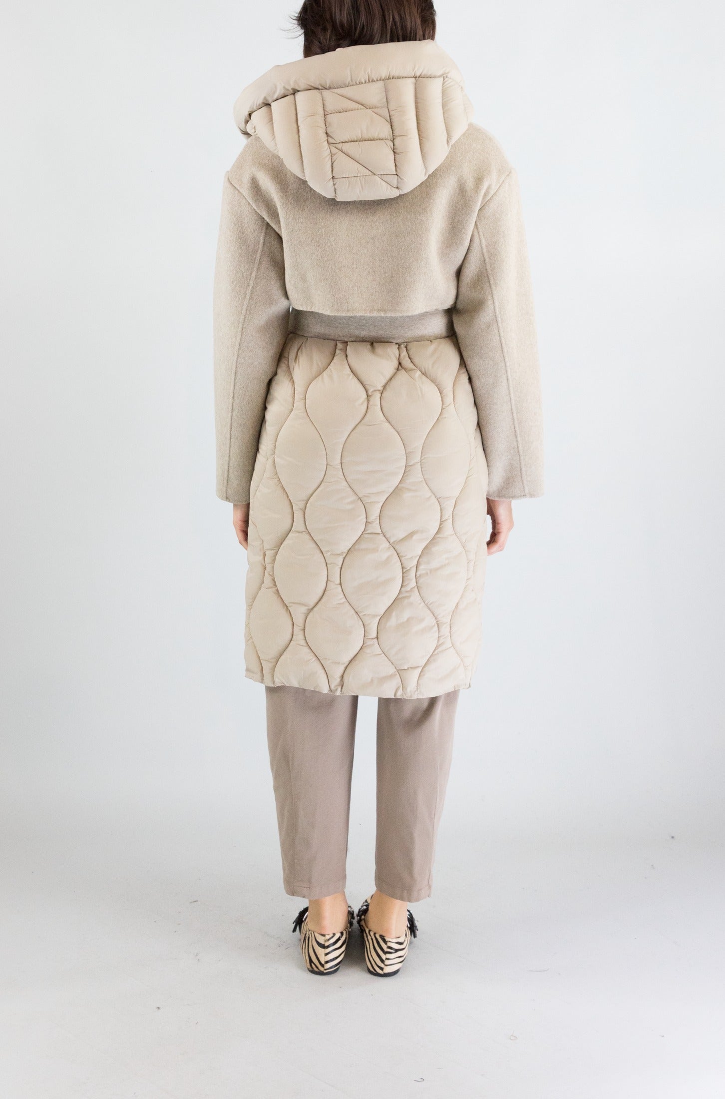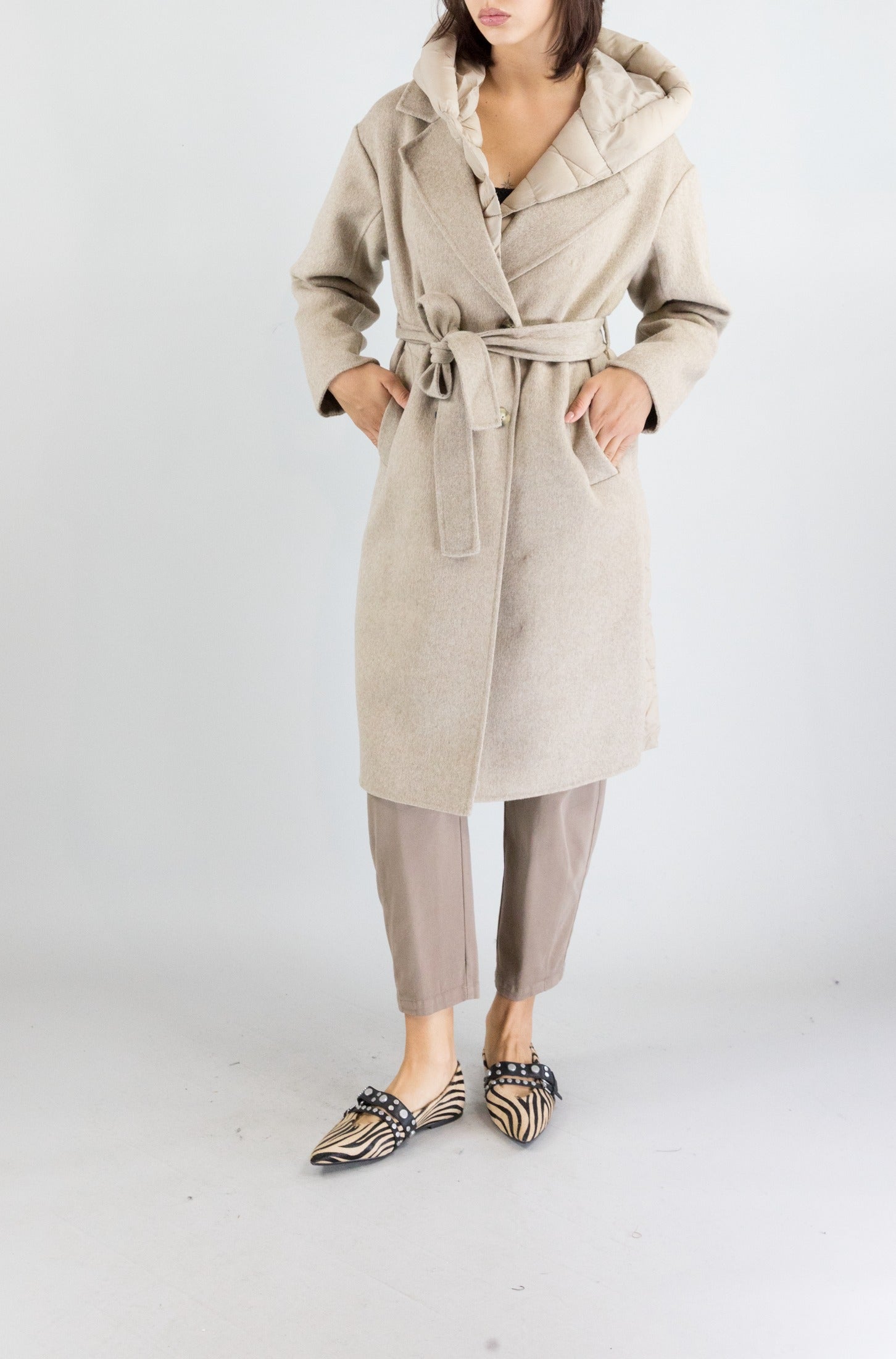 Vicolo Cappotto Imbottito con Cappuccio e Cintura Beige
