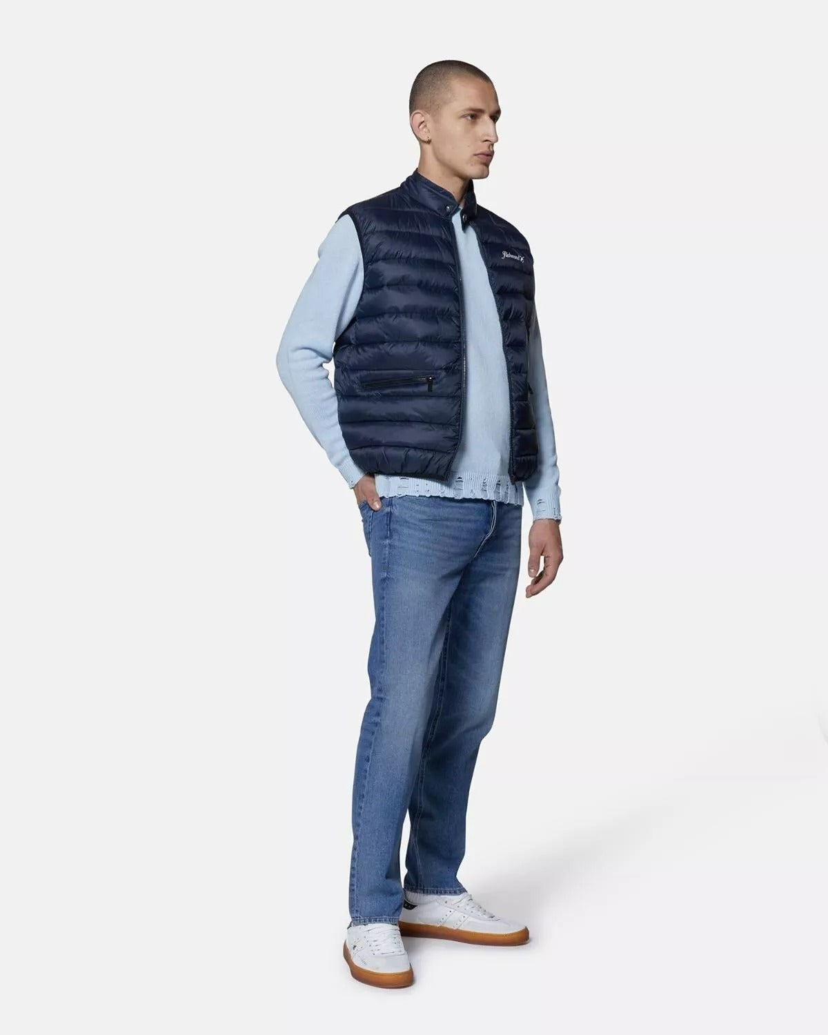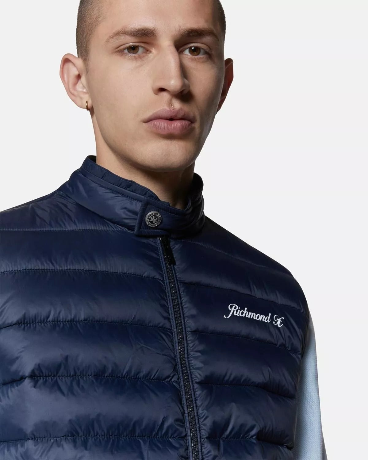Smanicato uomo con collo pistagna chiusura con cerniera e scritta del marchio sul petto