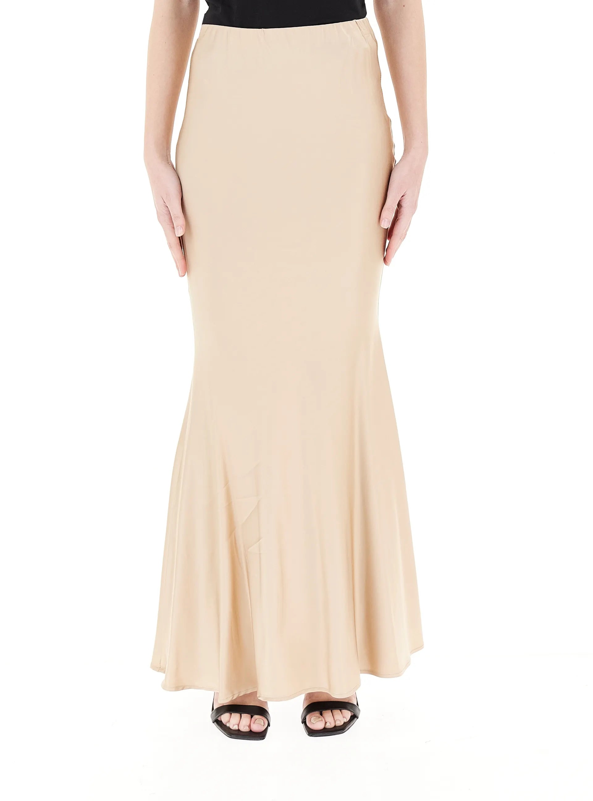 Gonna in viscosa modello midi con elastico in vita svasata in basso