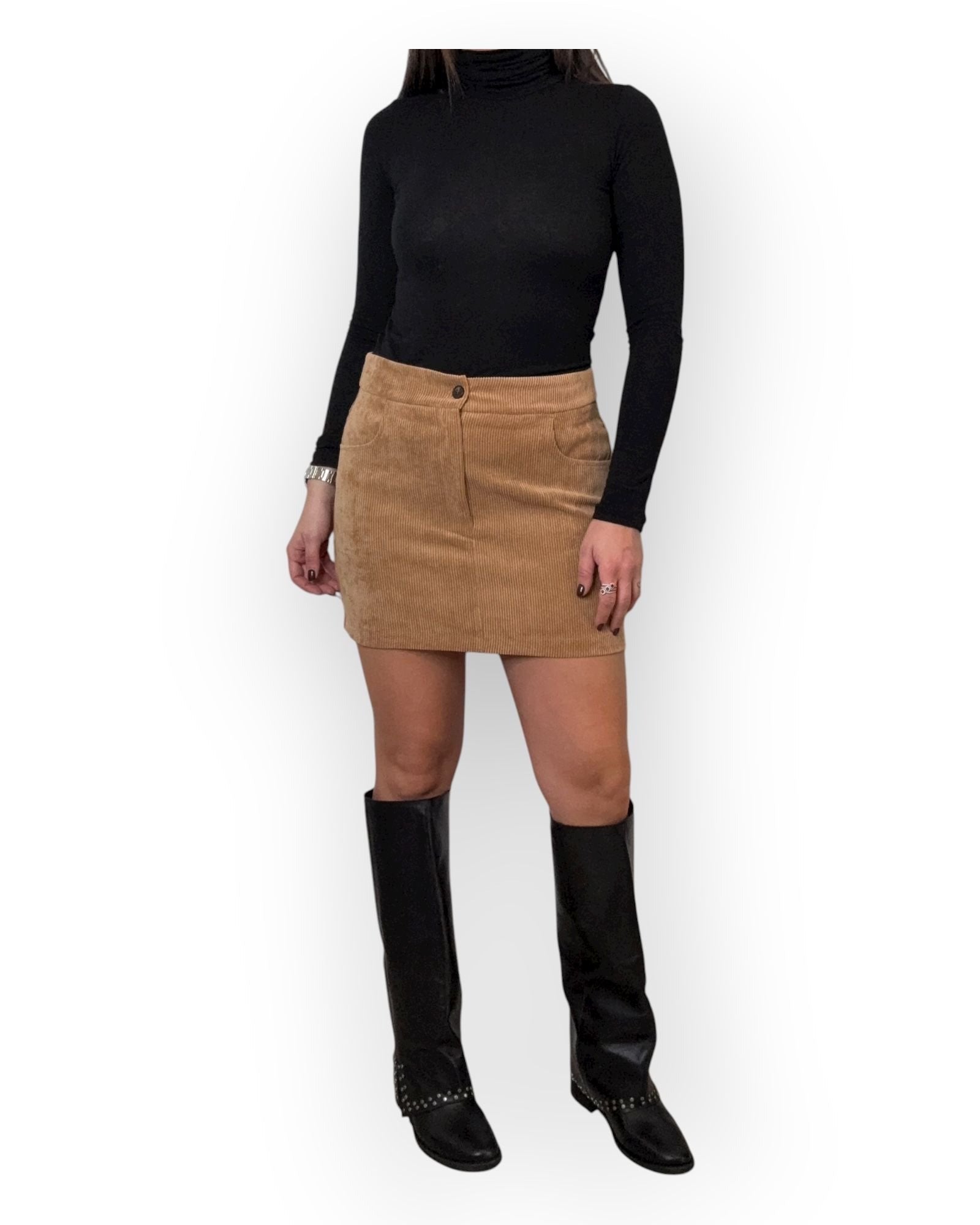 Minigonna A-Line in Velluto a Coste Beige Vicolo