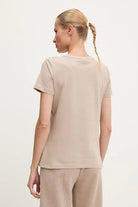 T-shirt donna realizzata in maglia fine elasticizzata. Il modello realizzato in un tessuto estremamente confortevole ad alta percentuale di cotone.