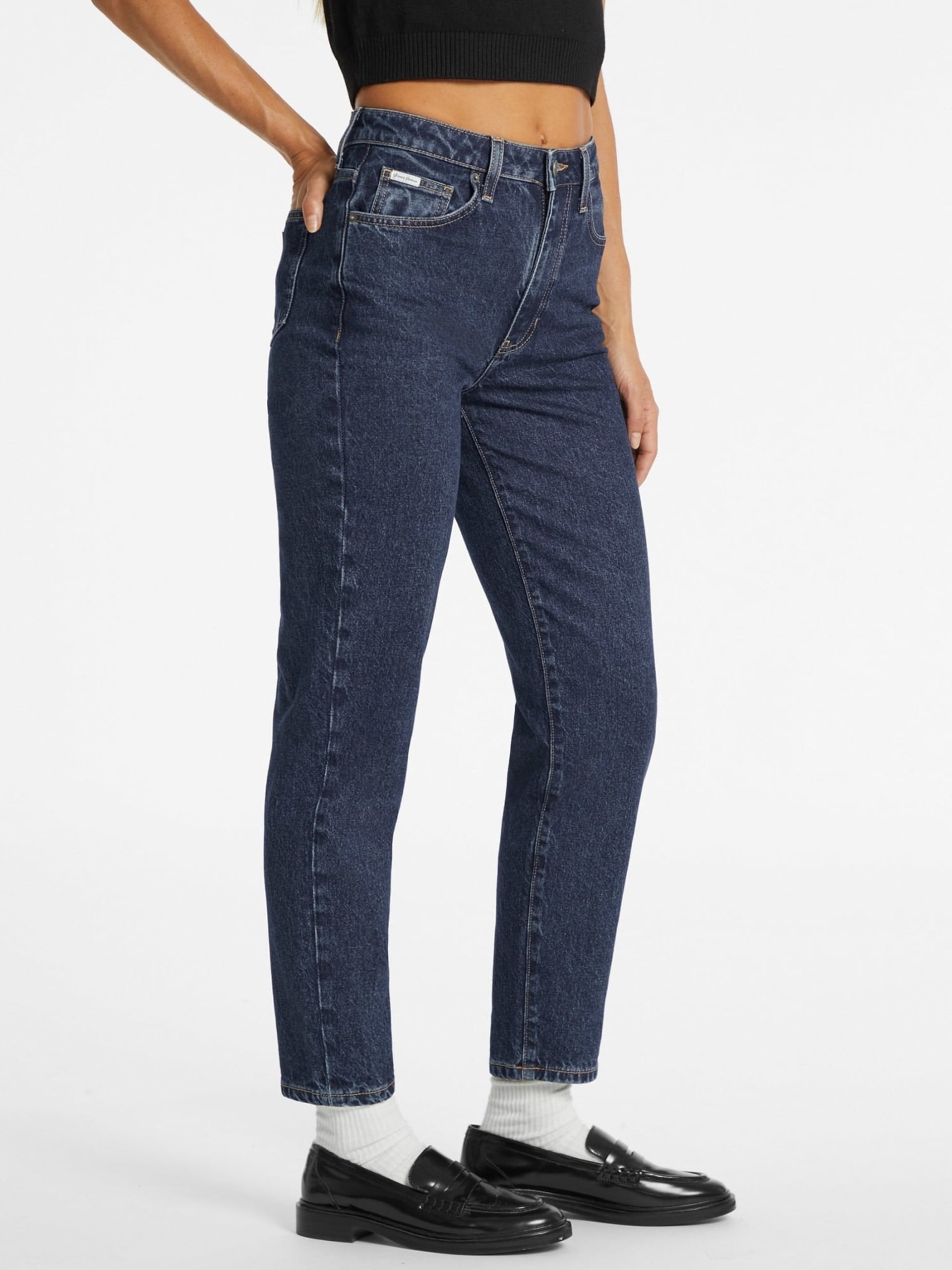 Vestibilità mom relaxed e gamba affusolata.