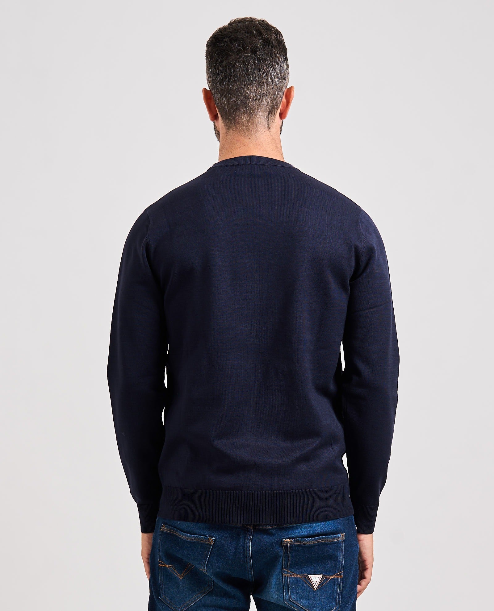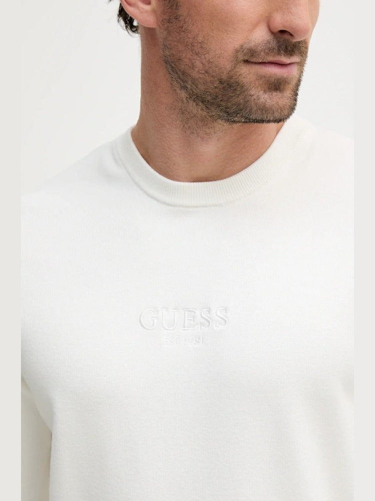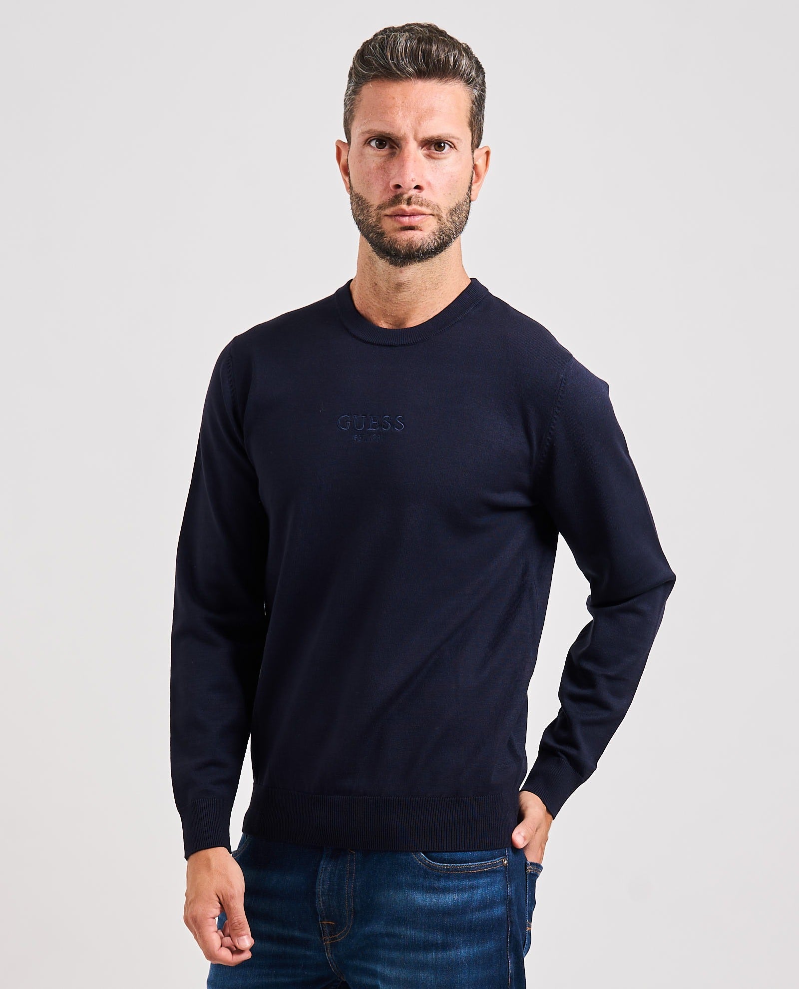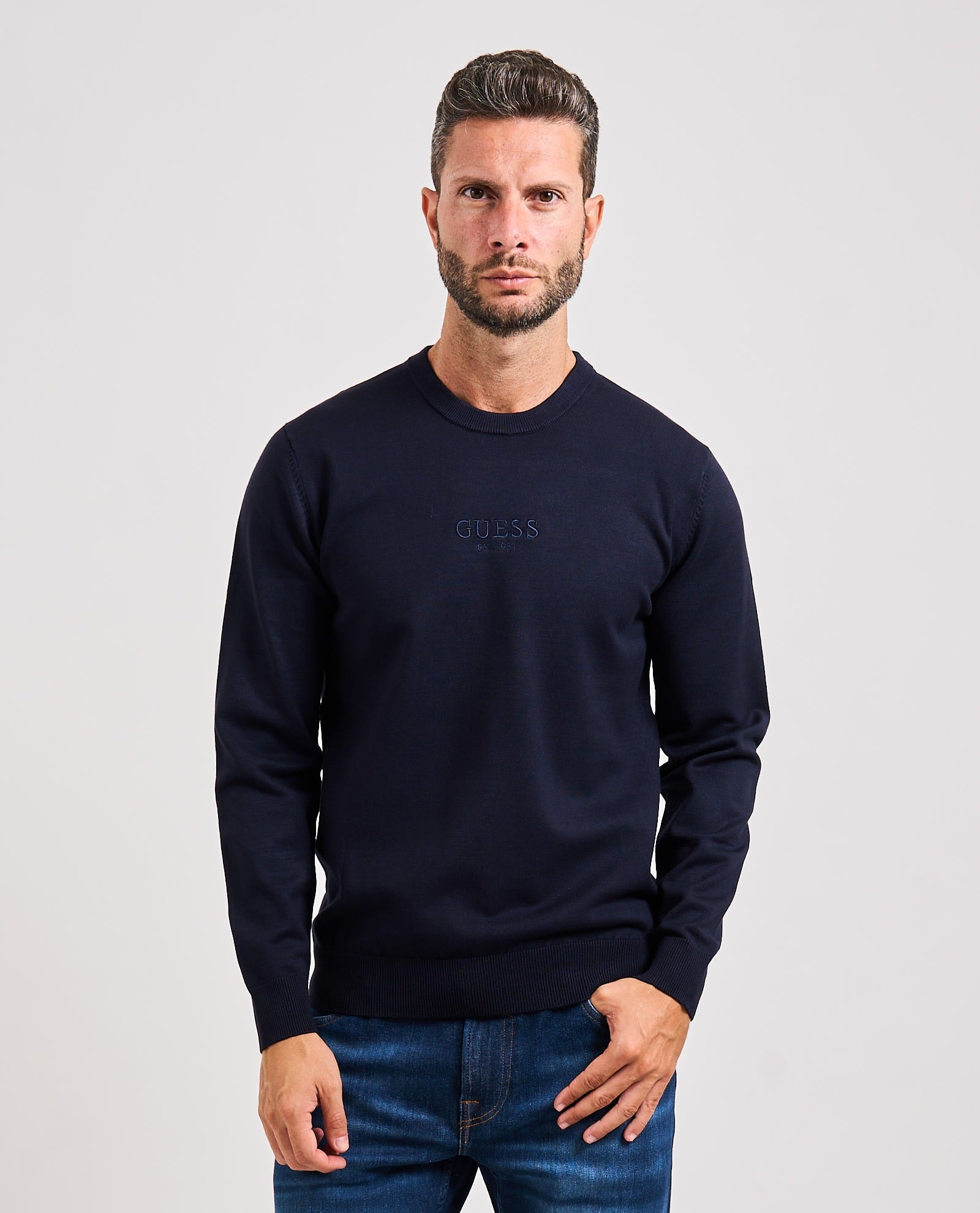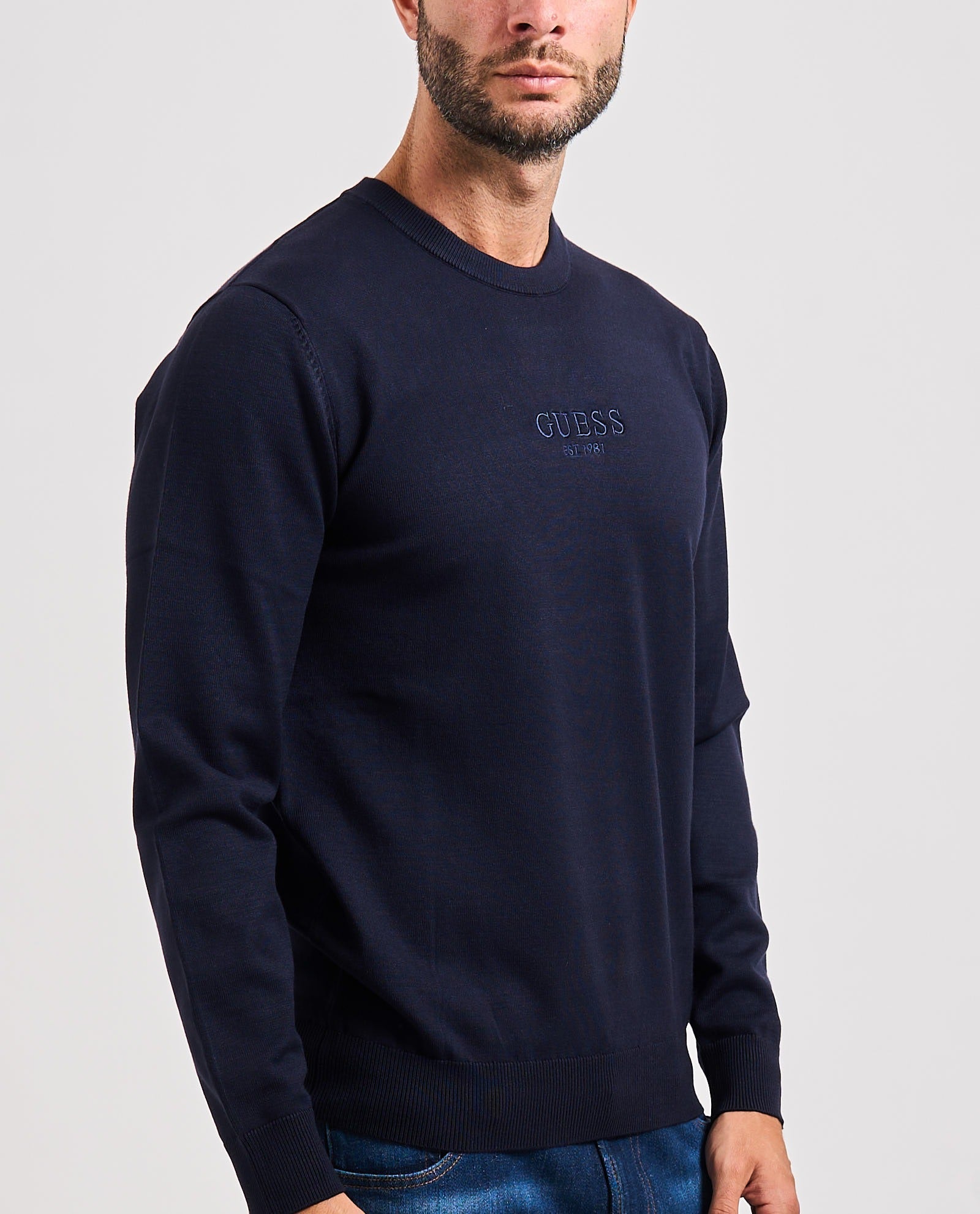 Guess maglia in tinta unita girocollo, maniche lunghe, polsini e orlo rifiniti con cordino elastico, logo ricamato sul petto.
