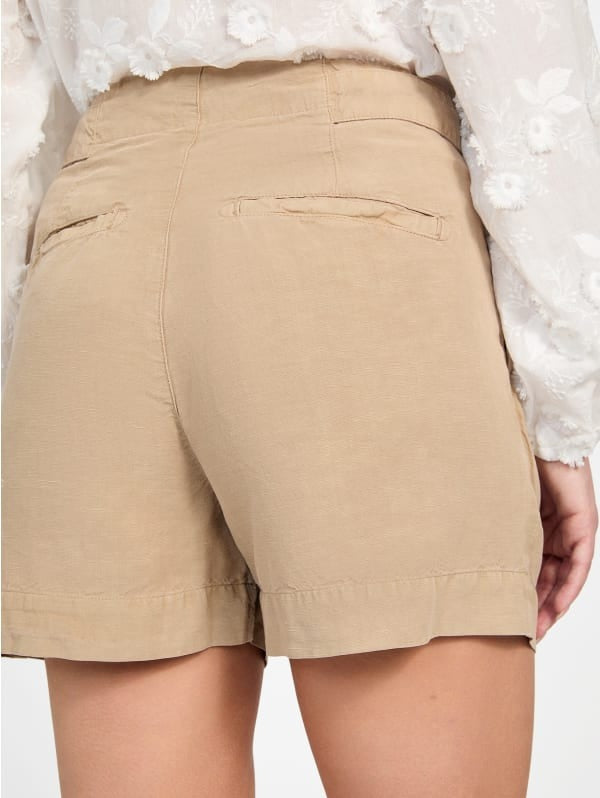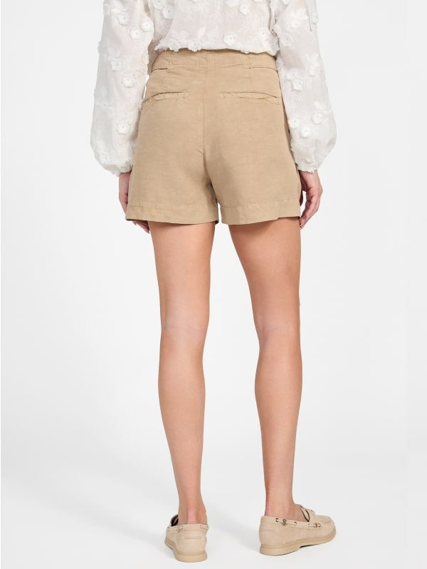 Guess Shorts con Pinces in Misto Lino Avorio