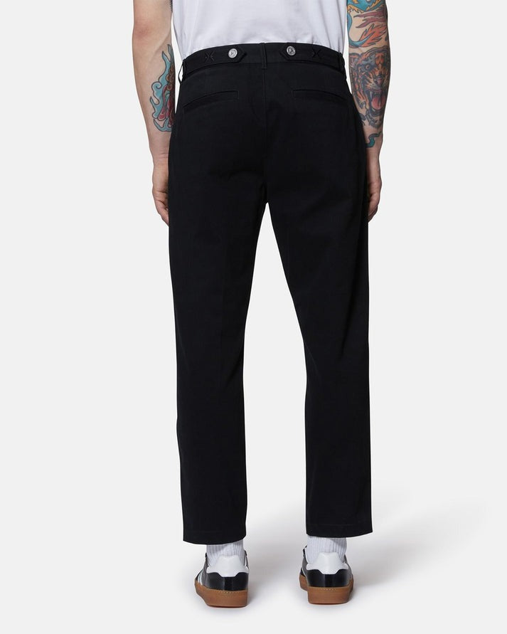 Jeans uomo presenta chiusura con bottone logato e cerniera, passanti in vita per cintura. Sul retro bottone per regolare il cinto e doppia tasca. Lateralmente tasca americana e doppia pence e logo patch frontalmente. Fondo dritto.