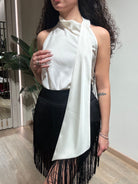 Le Streghe Top in Raso con Frange Nero