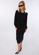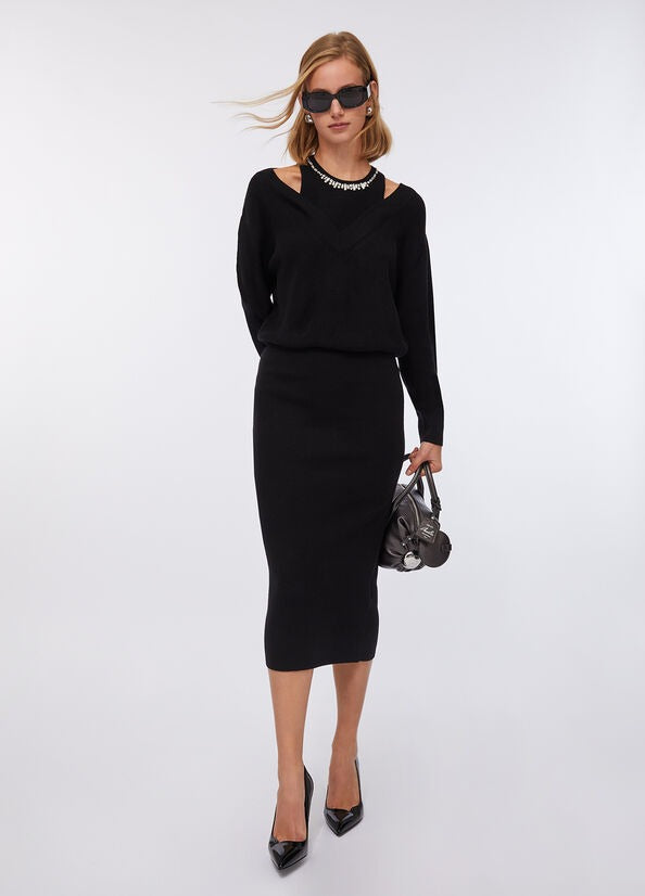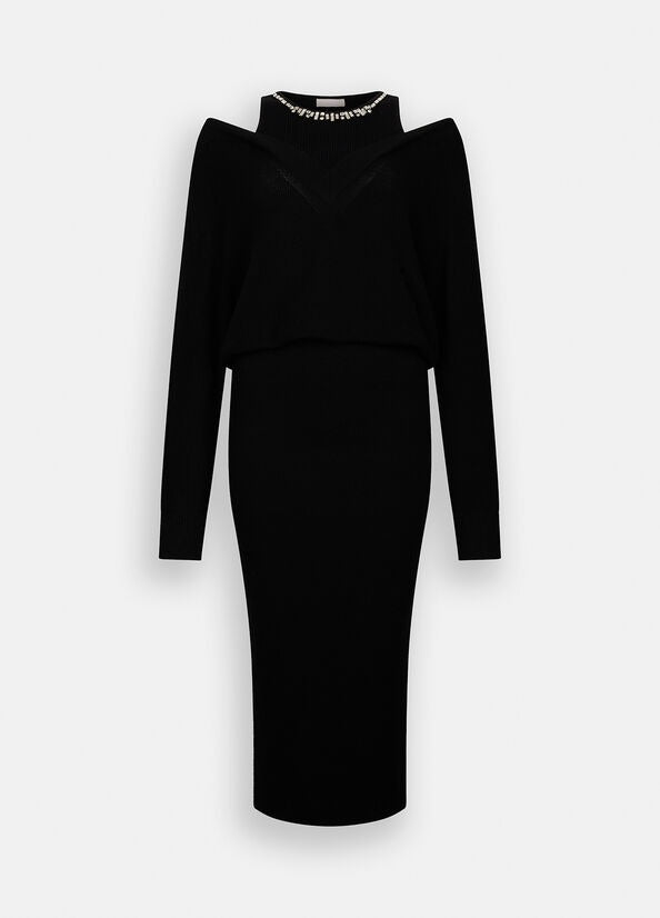 Liu Jo Abito in Maglia con Ricami Gioiello Nero