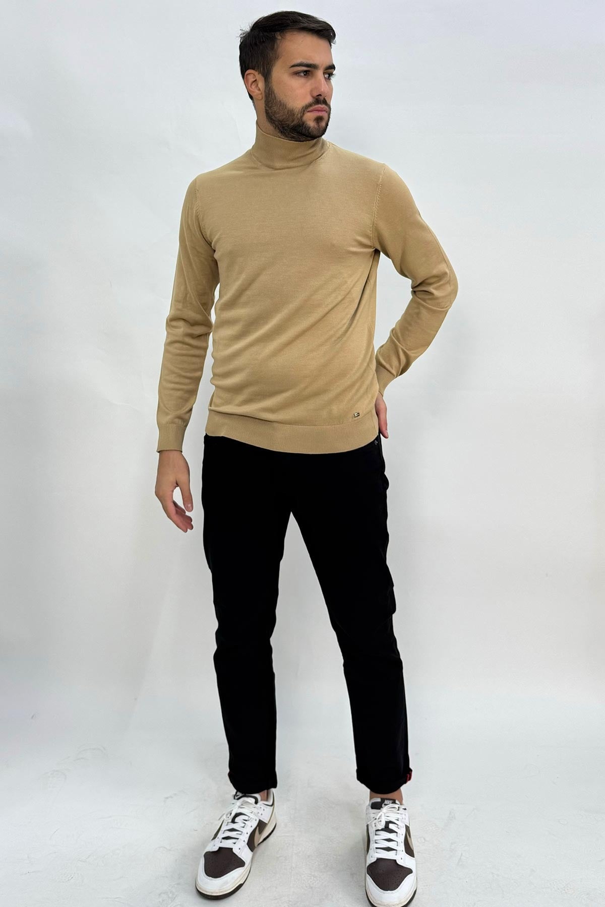 Maglia uomo collo dolce vita maniche lunghe con polsi e fondo a costine