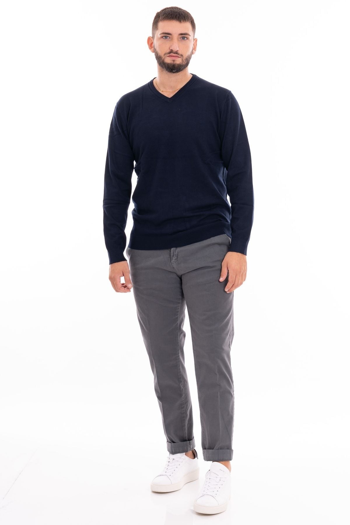 Maglia uomo con scollo a V, polisini e fondo maglia bordi a costine