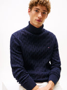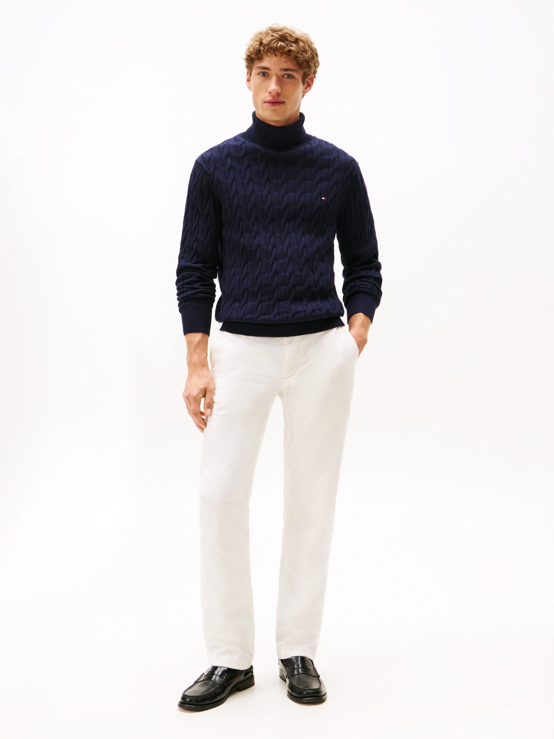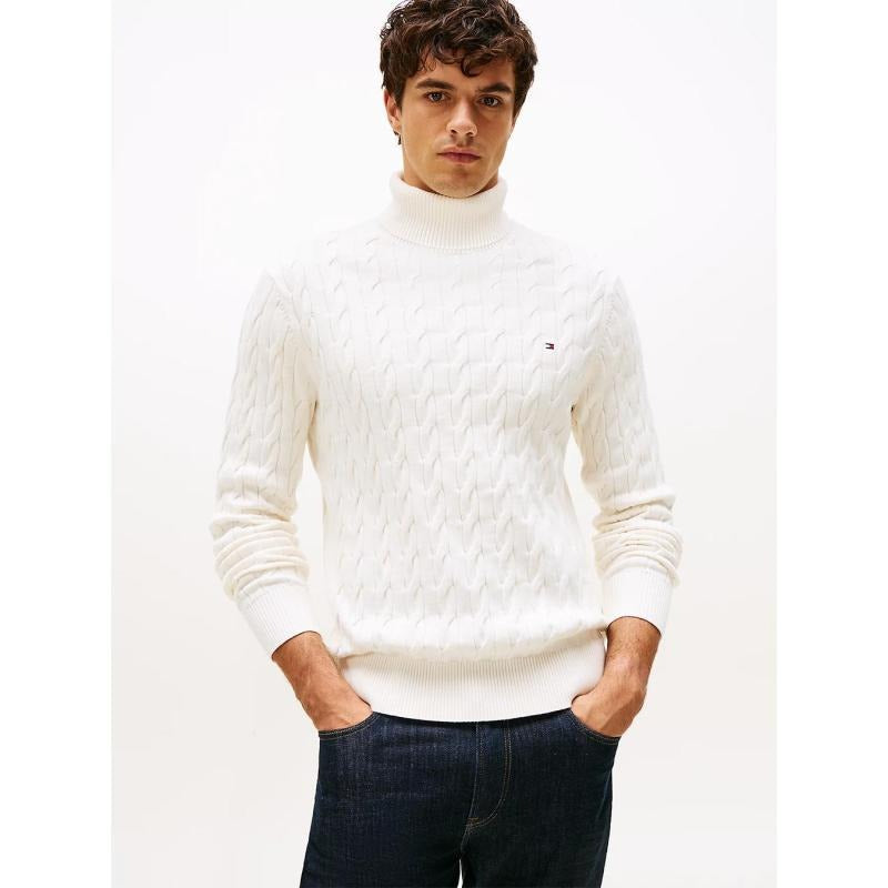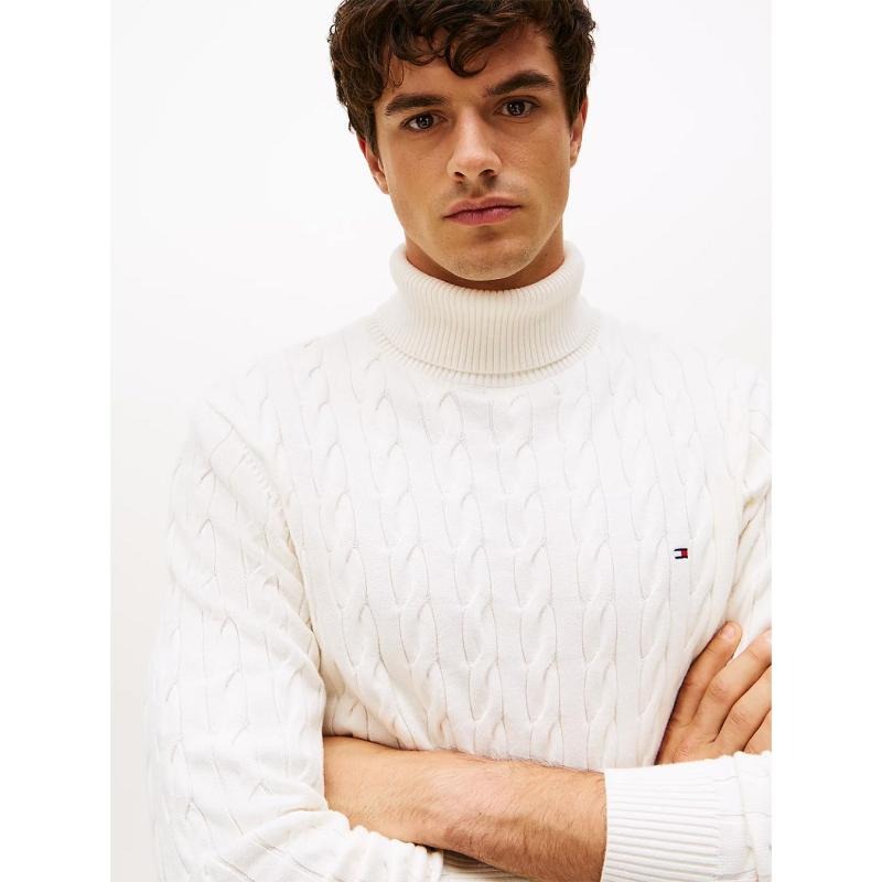 Pullover uomo Il classico dolcevita in maglia intrecciata è realizzato in puro cotone pettinato, per sfoggiare uno stile iconico anche nelle giornate più fredde.