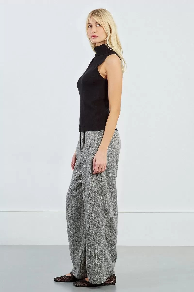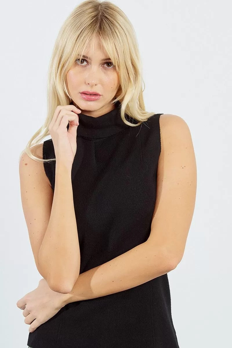 Dolcevita donna sottile senza maniche colletto rialzato con revers vestibilità slim