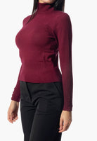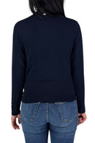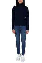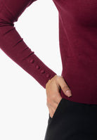 Maglia donna dolcevita in misto viscosa con bottoni ai polsi e ciondolo logato sul retro