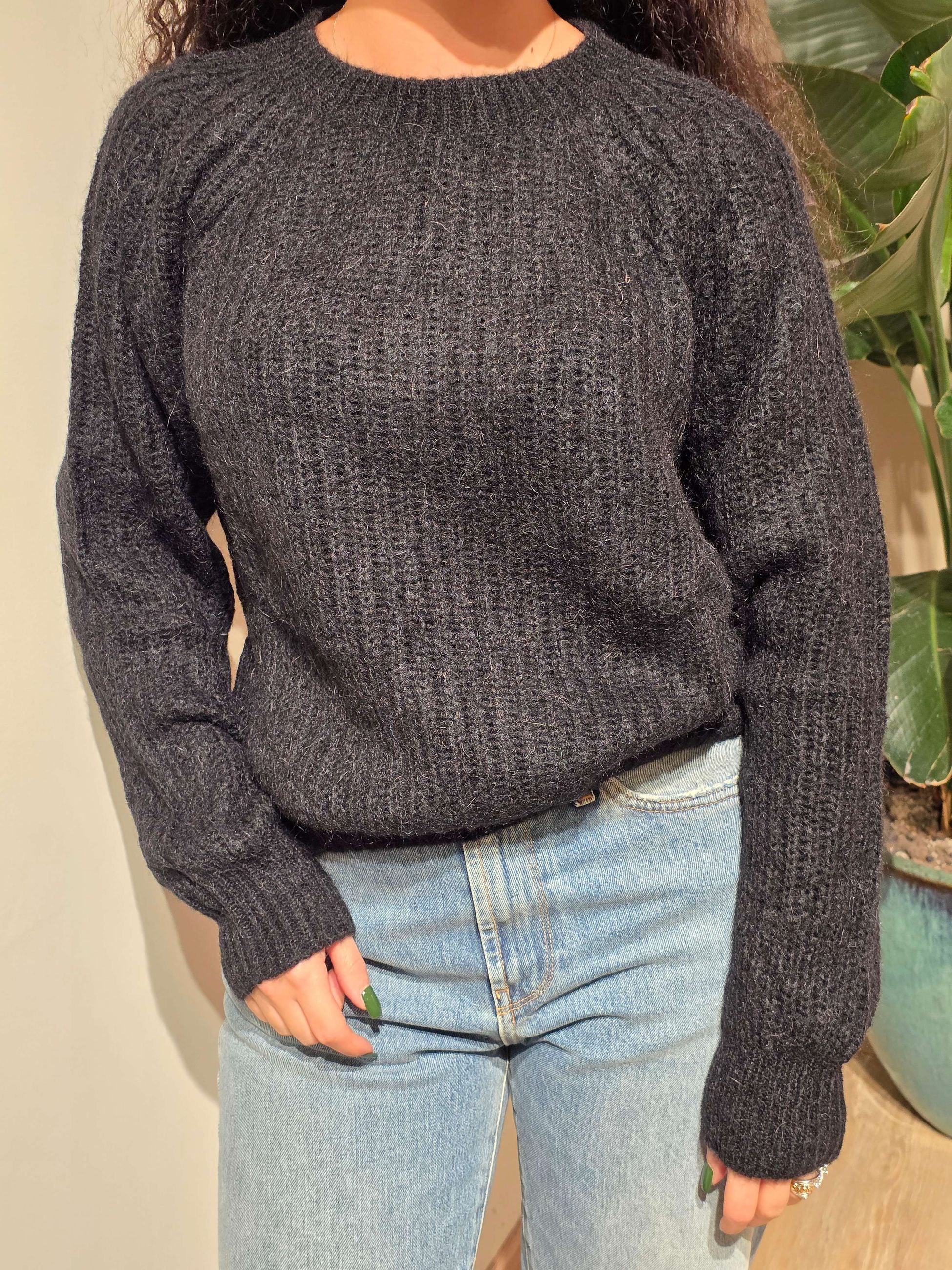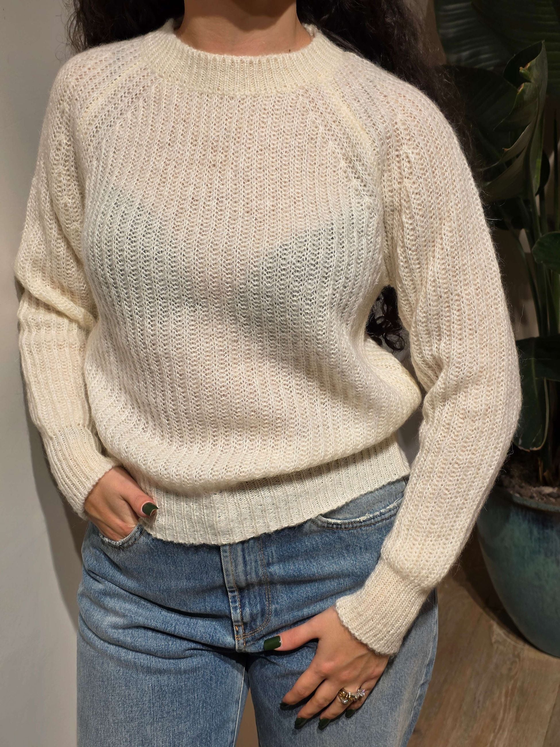 Maglia donna modello girocollo maniche lunghe motivo cannoletti