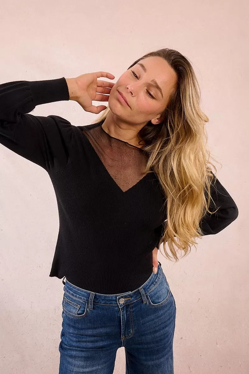Molly Bracken Maglia Bi-Materiale Maniche a Sbuffo Nero