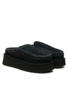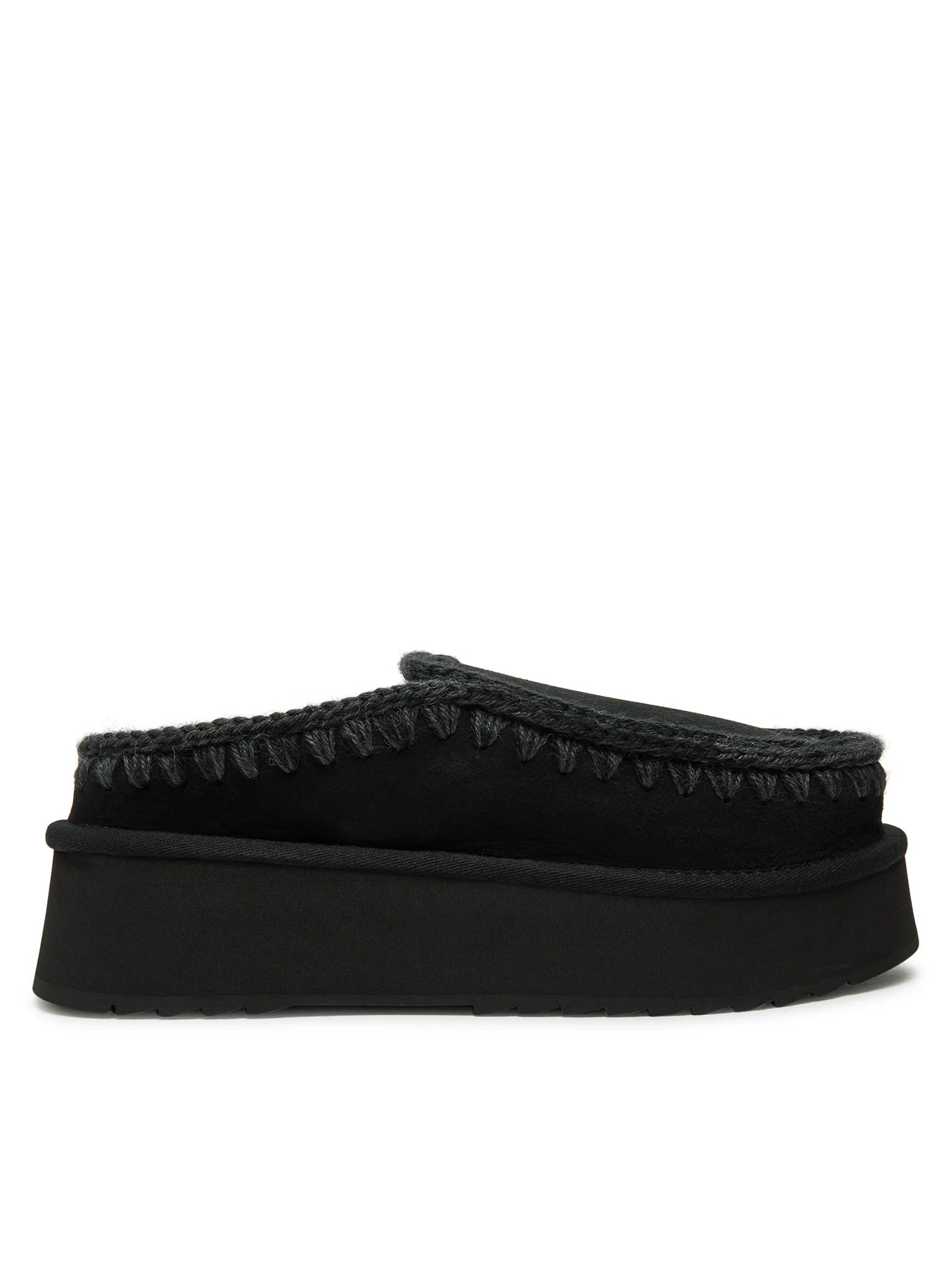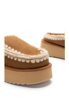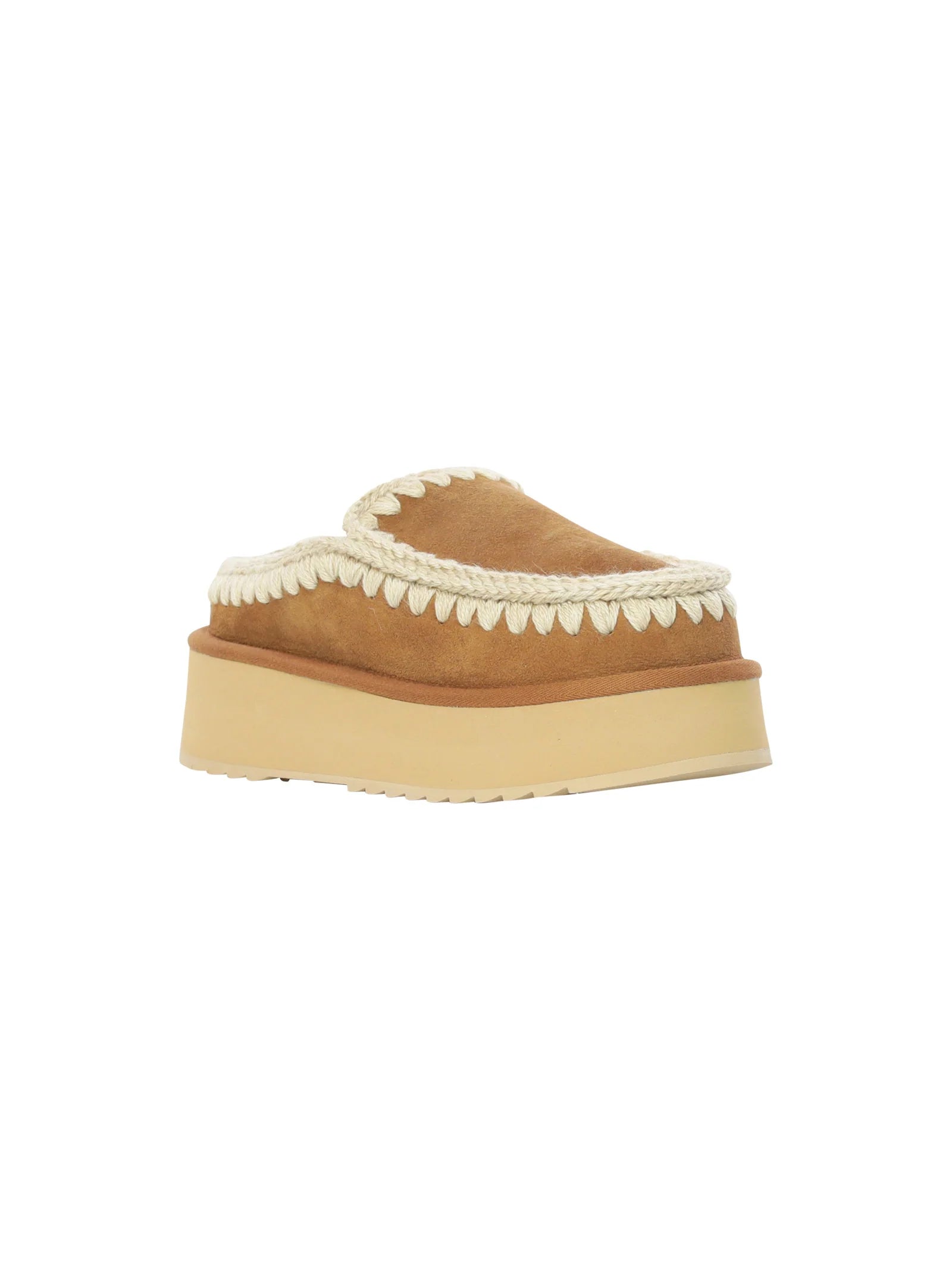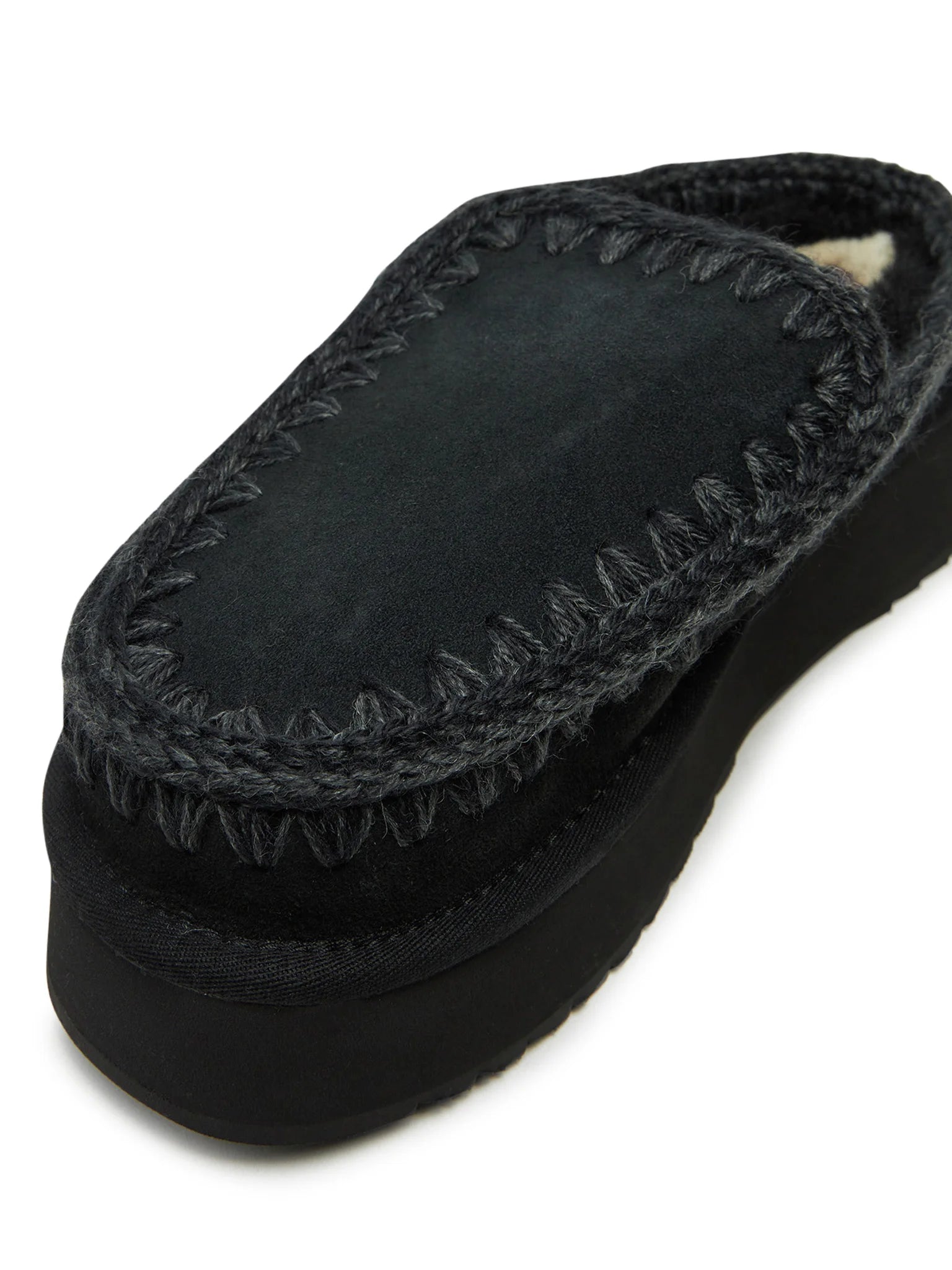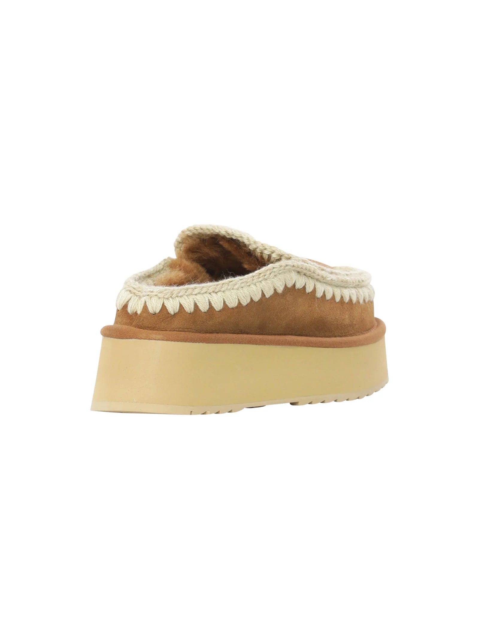 Novità per l'autunno-inverno 2024: il comodissimo clog eskimo slip-on platform è sapientemente realizzato a mano con lussuoso camoscio e presenta le cuciture in lana all'uncinetto distintive di mou. Incredibilmente confortevole e resistente con suola in gomma EVA. Altezza 18 cm.