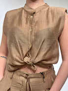 Le Streghe Camicia con Nodo Davanti Marrone