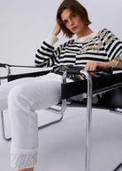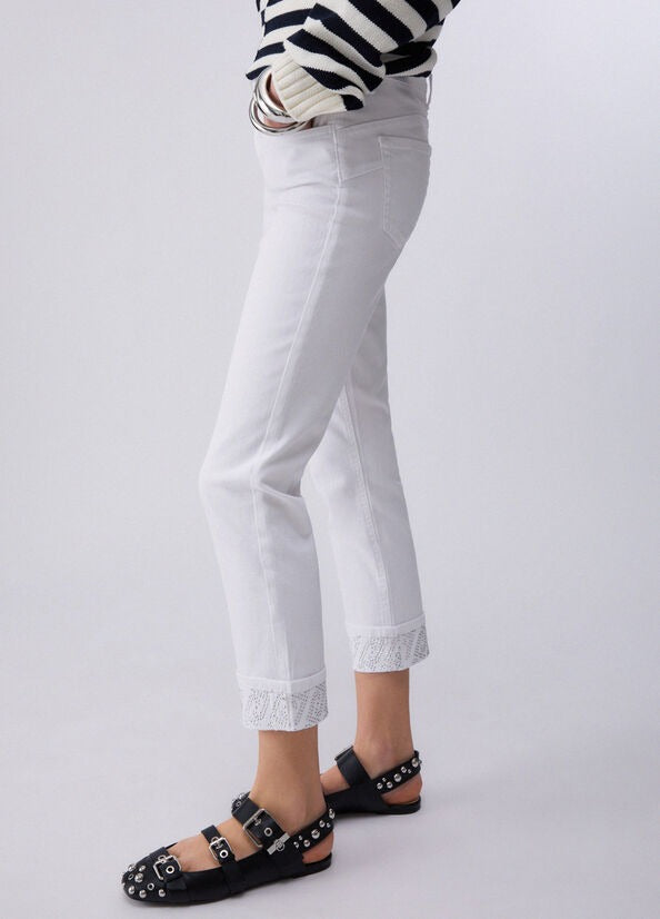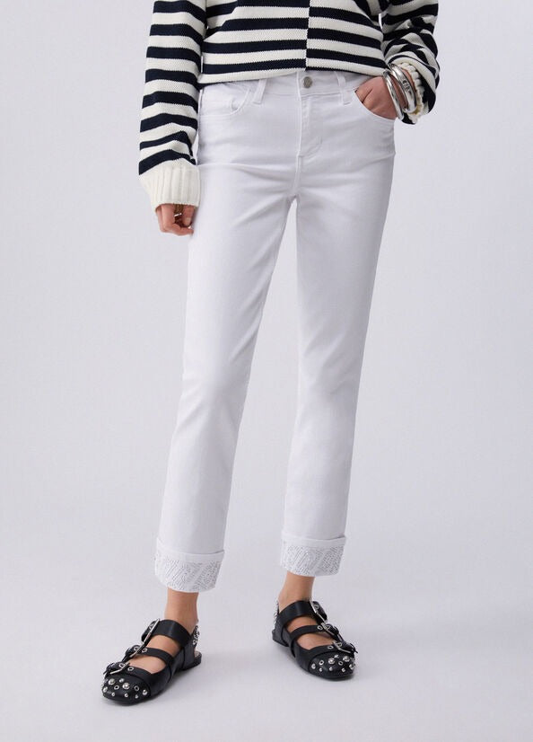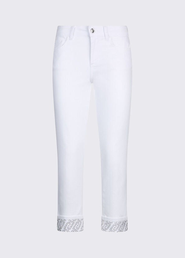 Liu Jo Pantaloni Skinny con Risvolto e Strass Bianco