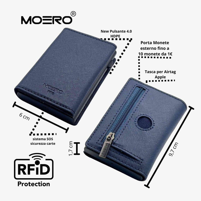 Moero Airtag Pro Saffiano Blue Navy Zip Blù