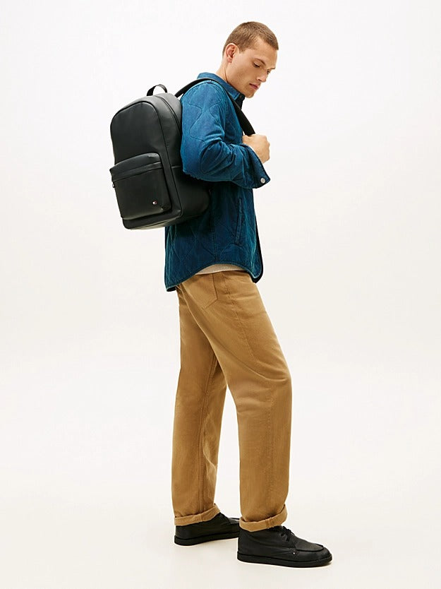 Zaino uomo trasporta tutto il necessario con stile grazie all'elegante zaino dotato di pratica tasca frontale a coste, completata dalla bandierina nei colori iconici.