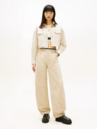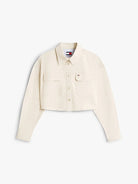 Tommy Jeans Camicia Crop Oversize Streetwear in Twill Beige