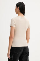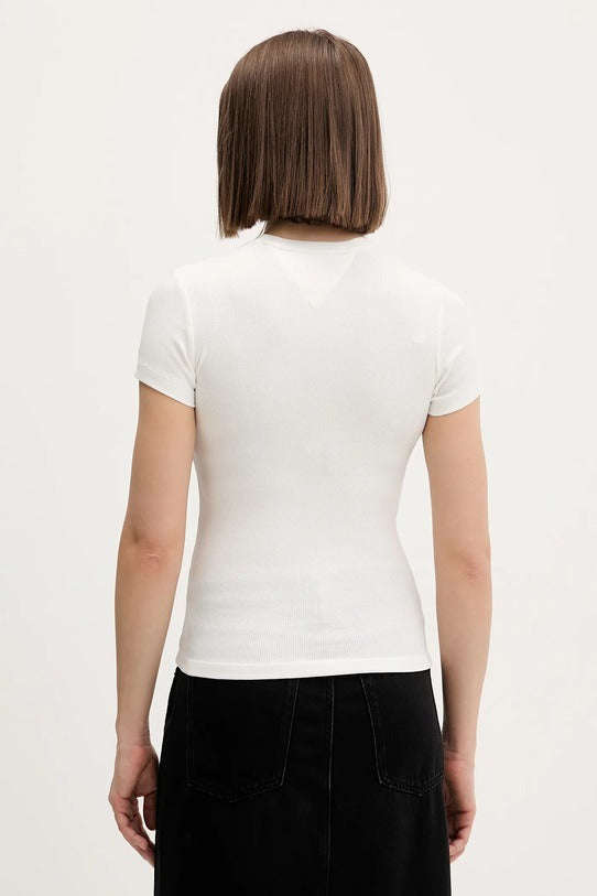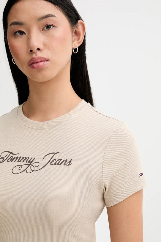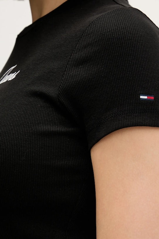 T-shirt donna realizzata in maglia fine elasticizzata. Il modello realizzato in un tessuto estremamente confortevole ad alta percentuale di cotone.