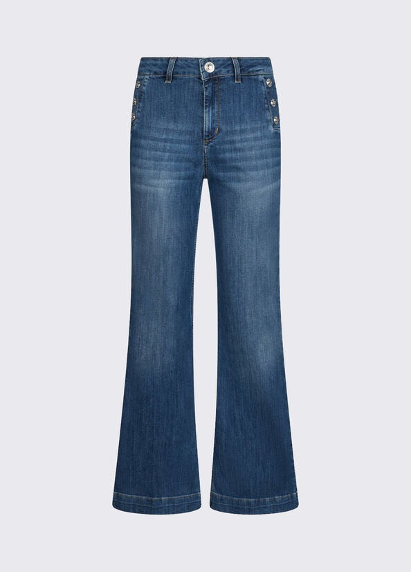 Liu Jo Jeans Flare a Vita Alta con Bottoni Blù