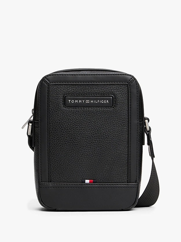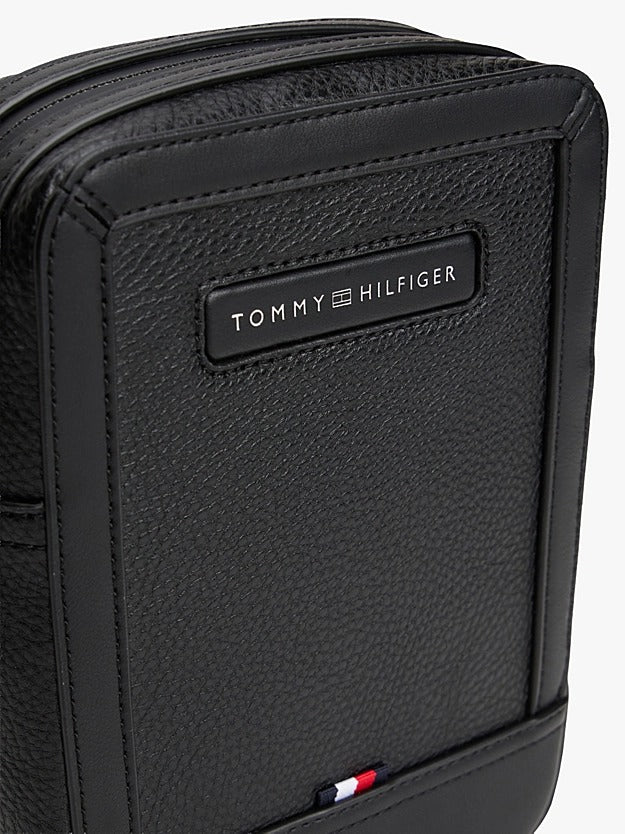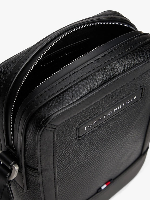 Tommy Hilfiger Borsello Reporter con Finitura Zigrinata e Logo Nero