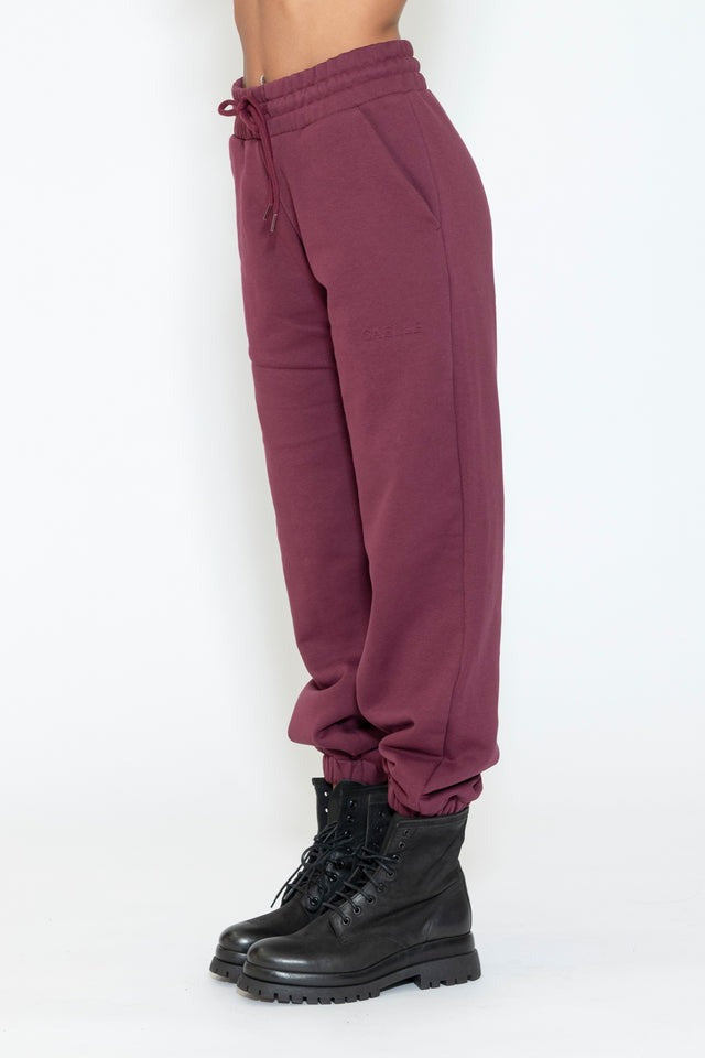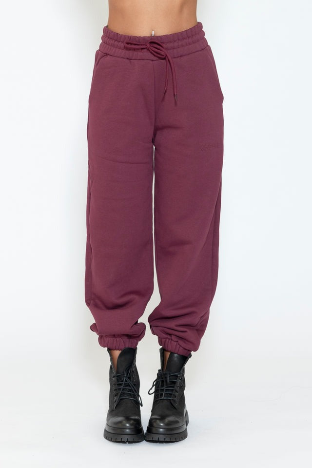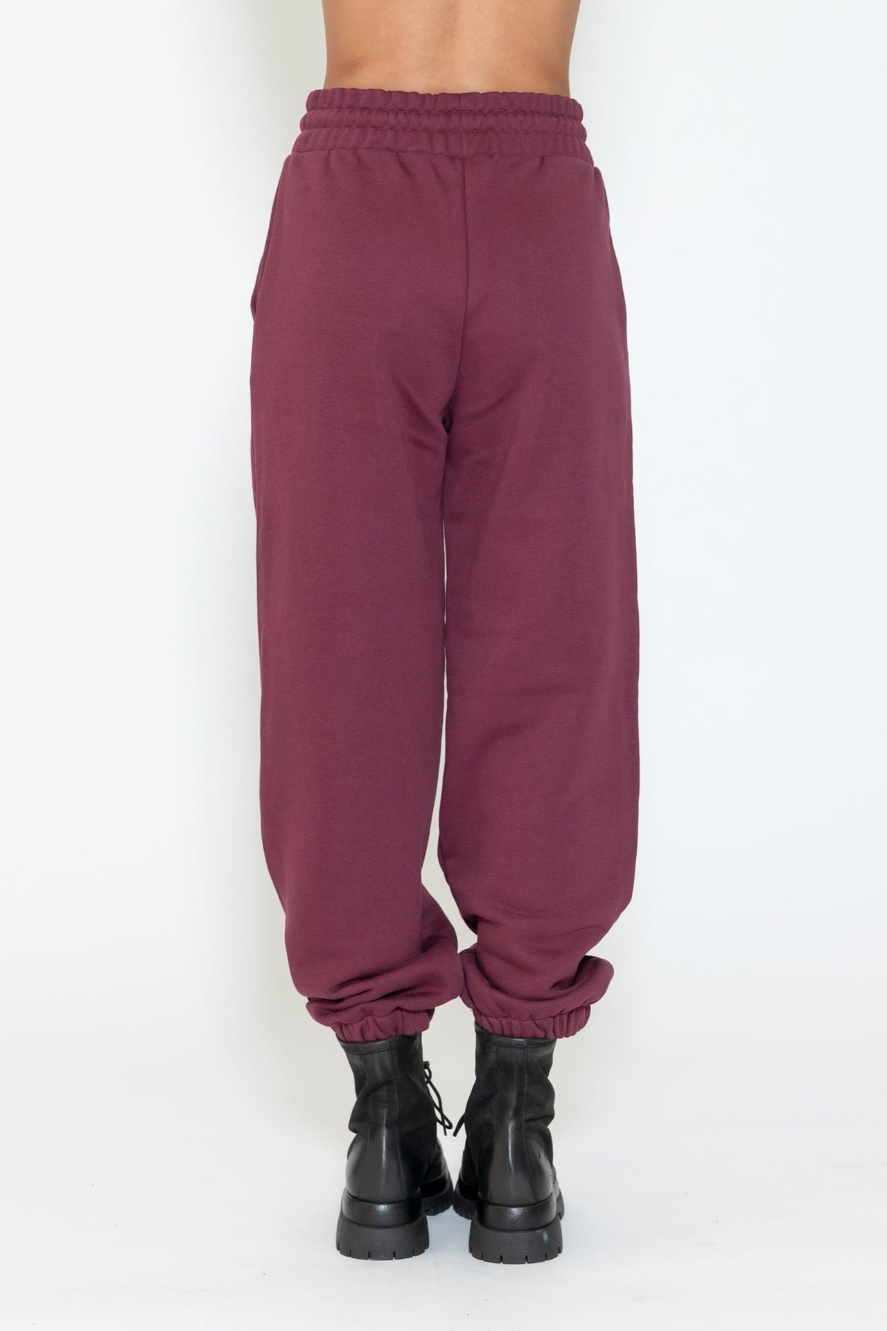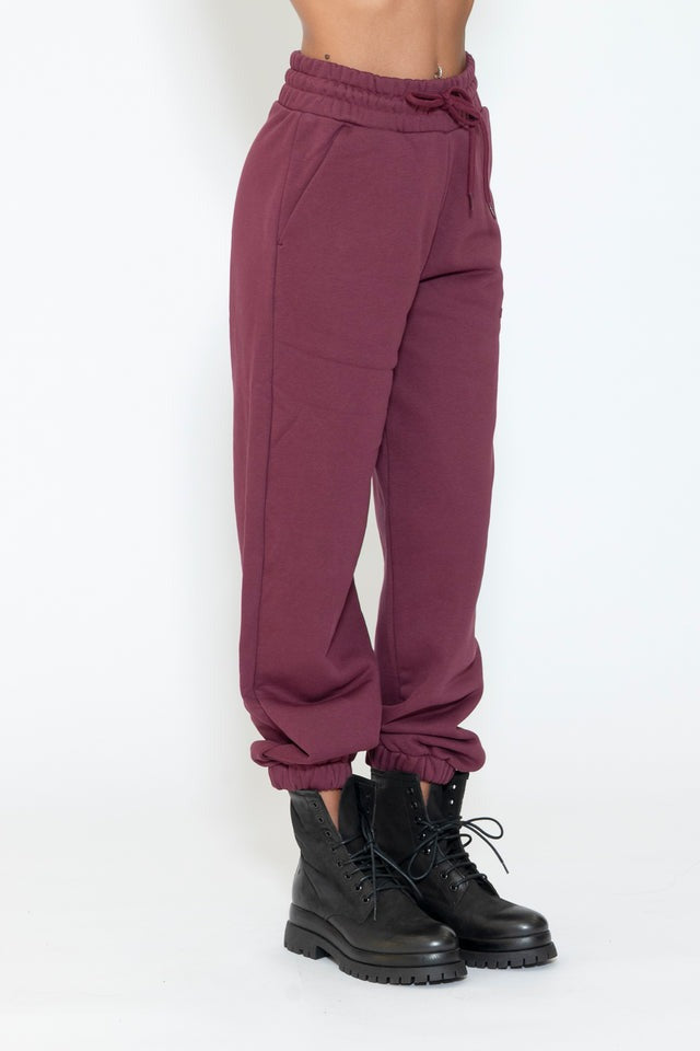 Pantalone donna in felpa con elastico e coulisse regolabile in vita e sul fondo con tasche laterali