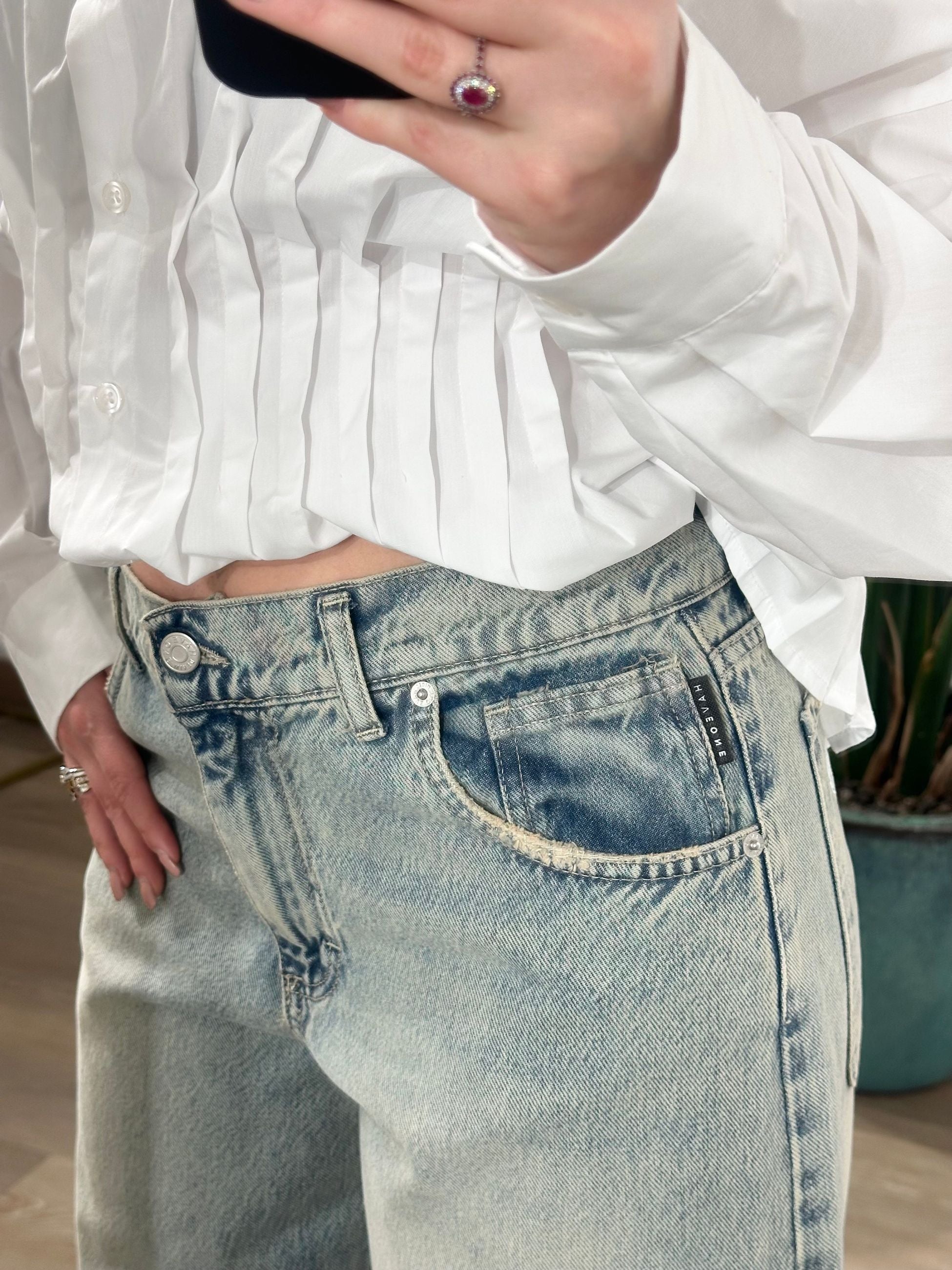 Haveone Jeans Bella Fondo Sfrangiato Denim