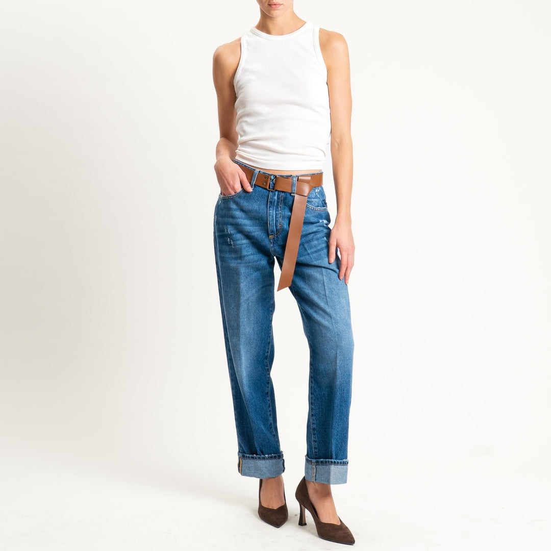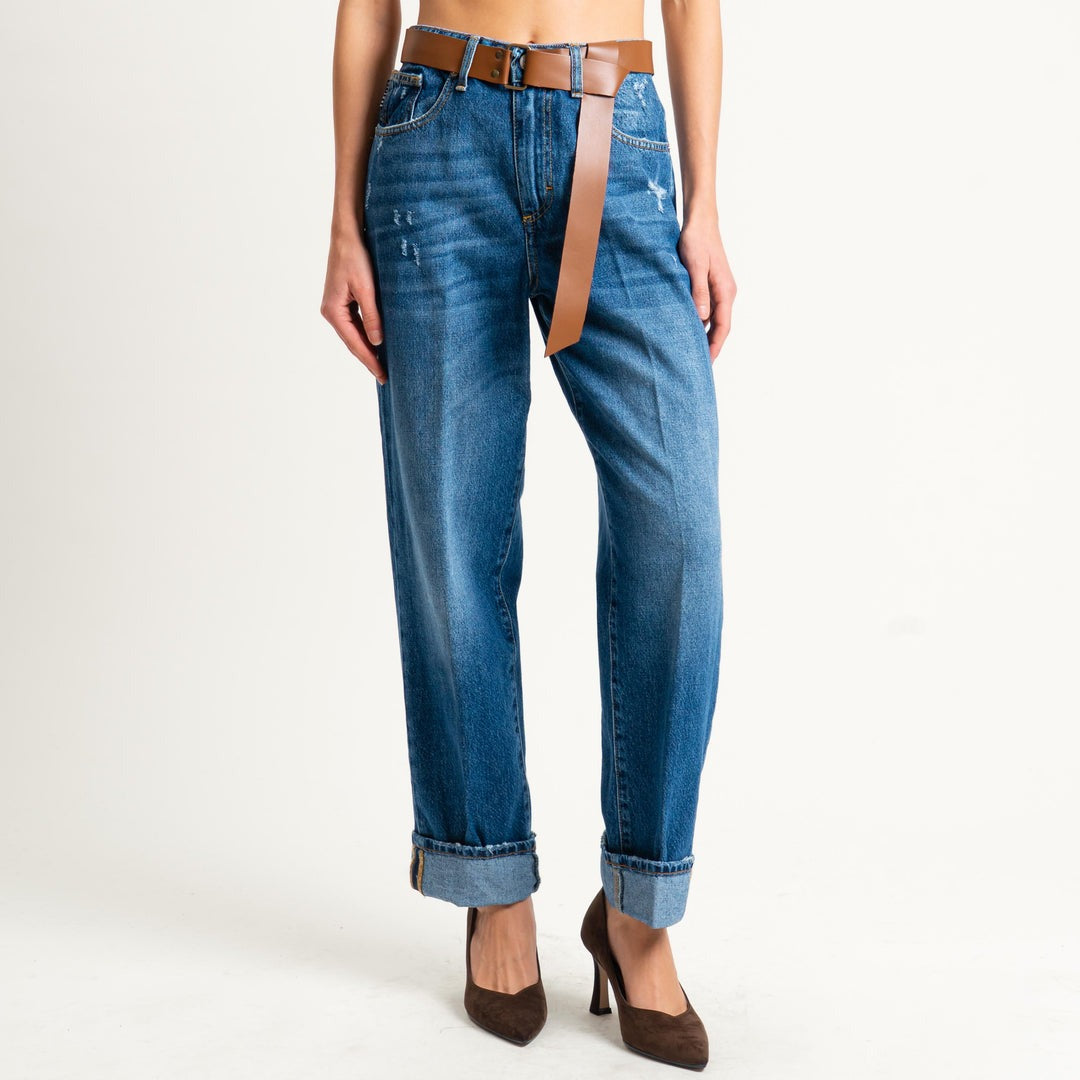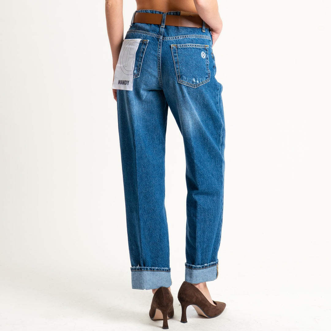 Haveone Jeans MANDY Dritto con Risvolto Blu