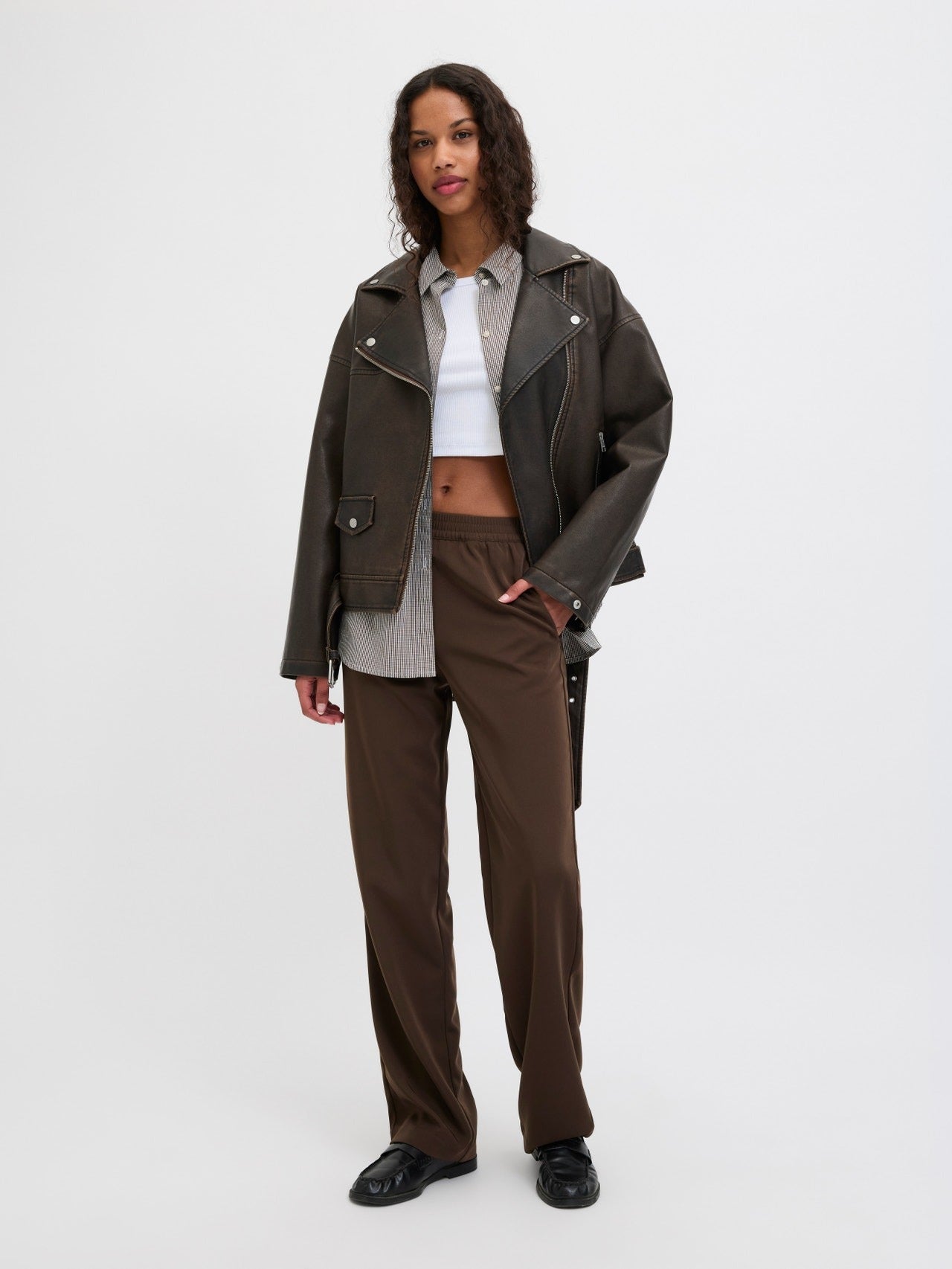 Pantalone donna con vita alta elastico in vita tasche laterali vestibilità regular fit