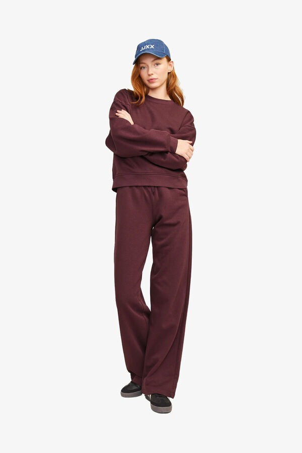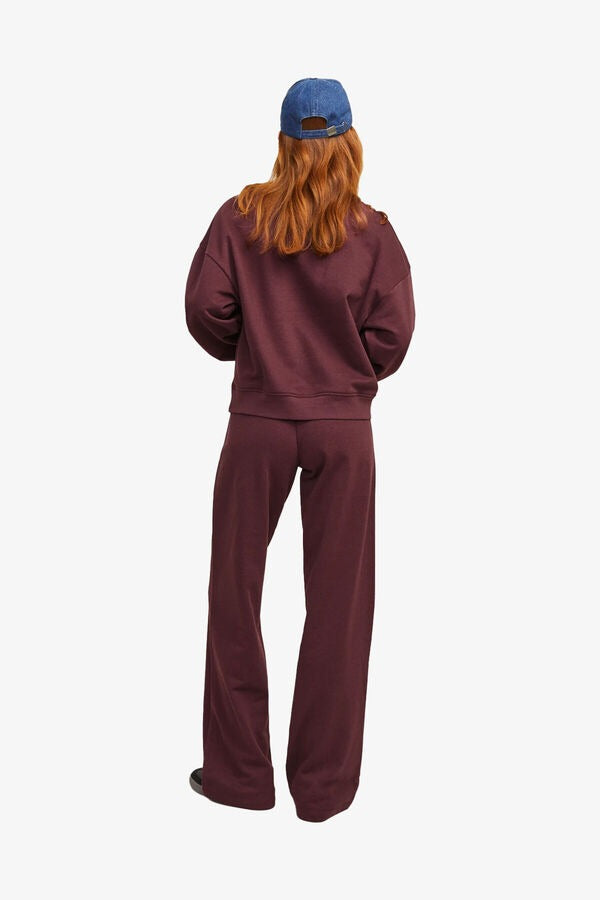 Pantalone donna in felpa con elasico in vita tasche laterali vestibilità regular fit vita alta