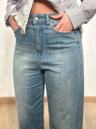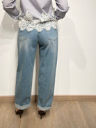 Jeans donna quattro tasche modello palazzo chiusura con cerniera bottone gambe con risvolto