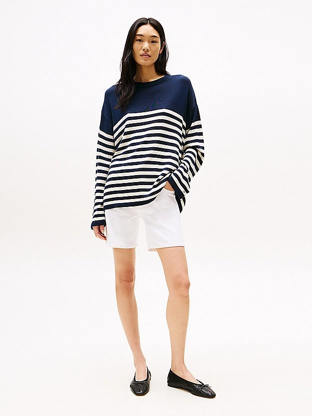 Shorts donna Il classico taglio dritto e i dettagli raffinati rendono unici gli shorts in denim, ideali sia per le occasioni eleganti che per i look estivi più casual. Caratteristiche principali Denim rigido Chiusura con zip e bottone Modello cinque tasche Branding Tommy Hilfiger Bandierina Tommy Hilfiger ricamata sulla tasca posteriore Modello e vestibilità Straight fit Vita media Composizione: 100% cotone Codice Articolo: WW0WW45924 https://nz.tommy.com/size_guide_womens