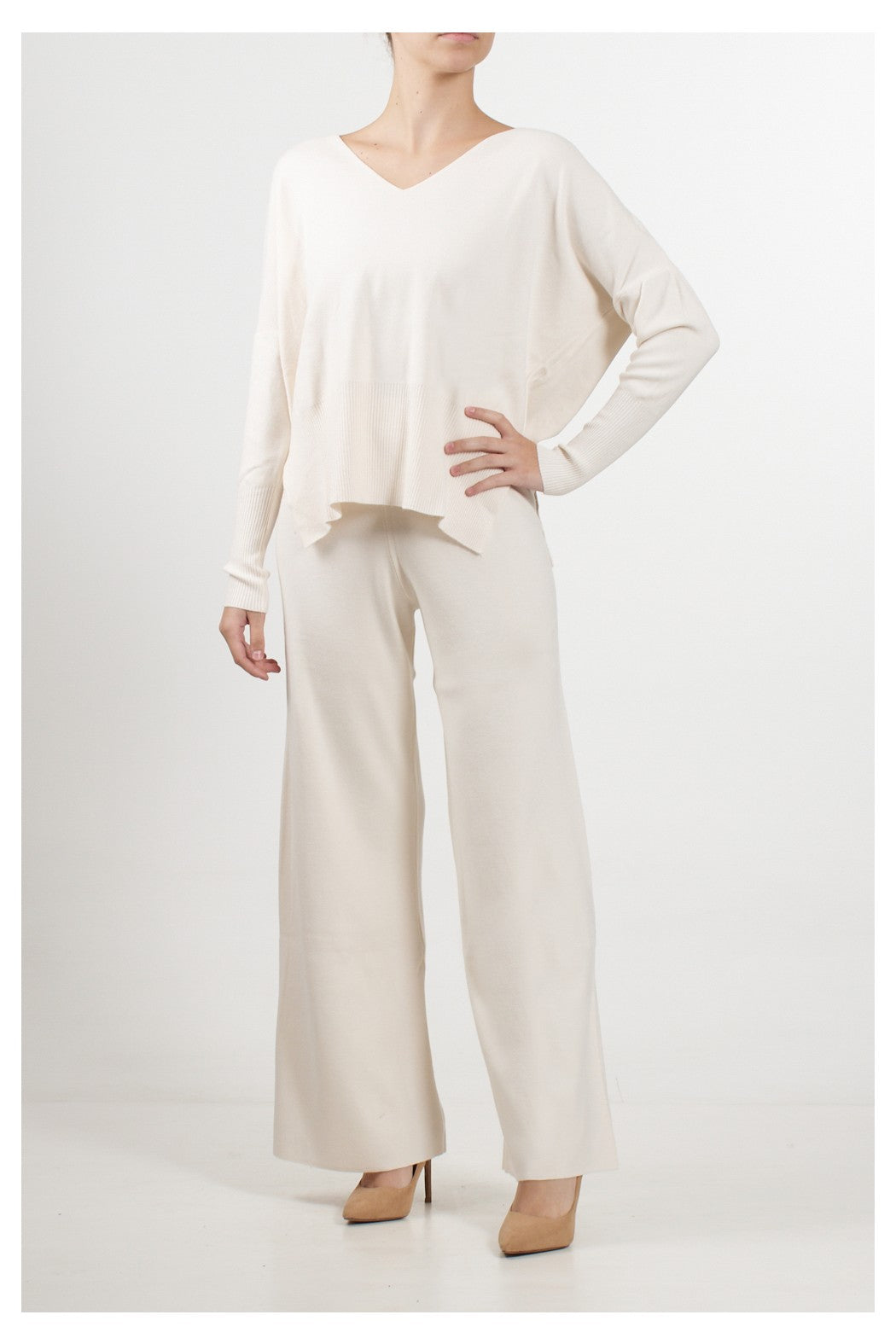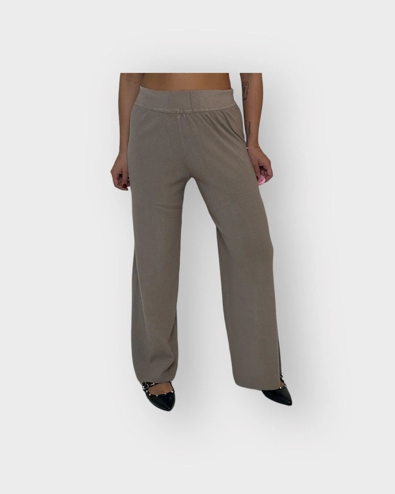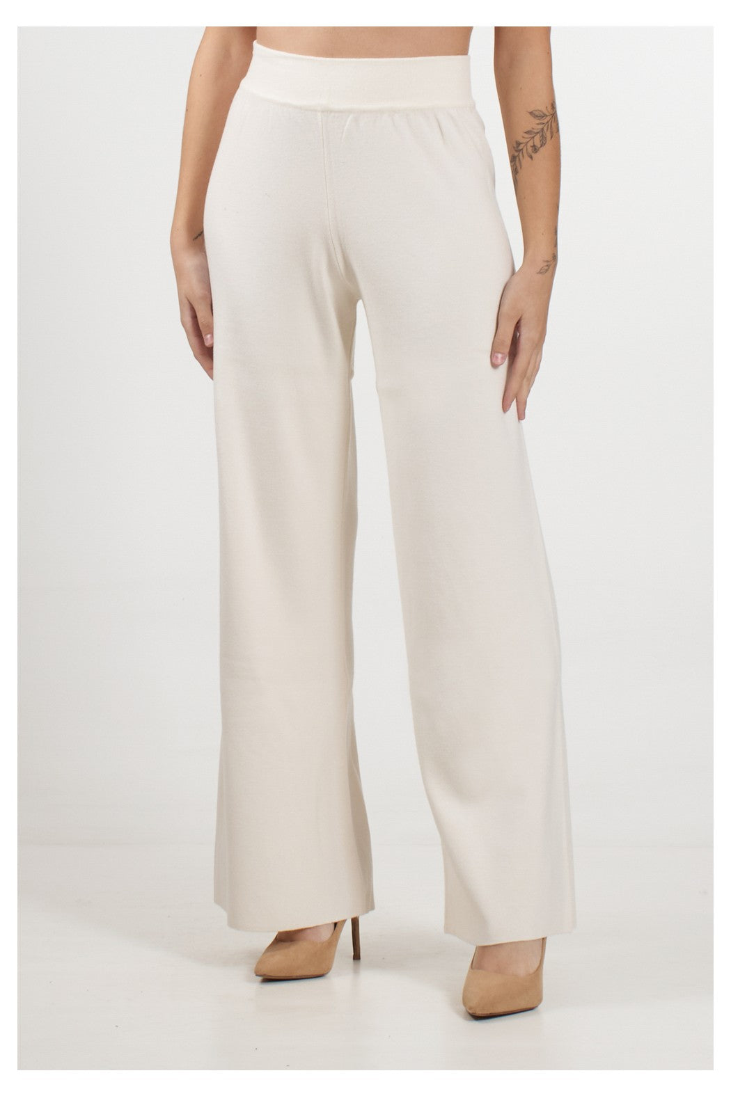 Pantalone donna in maglia modello palazzo con bustino elastico in vita vestibilità comoda