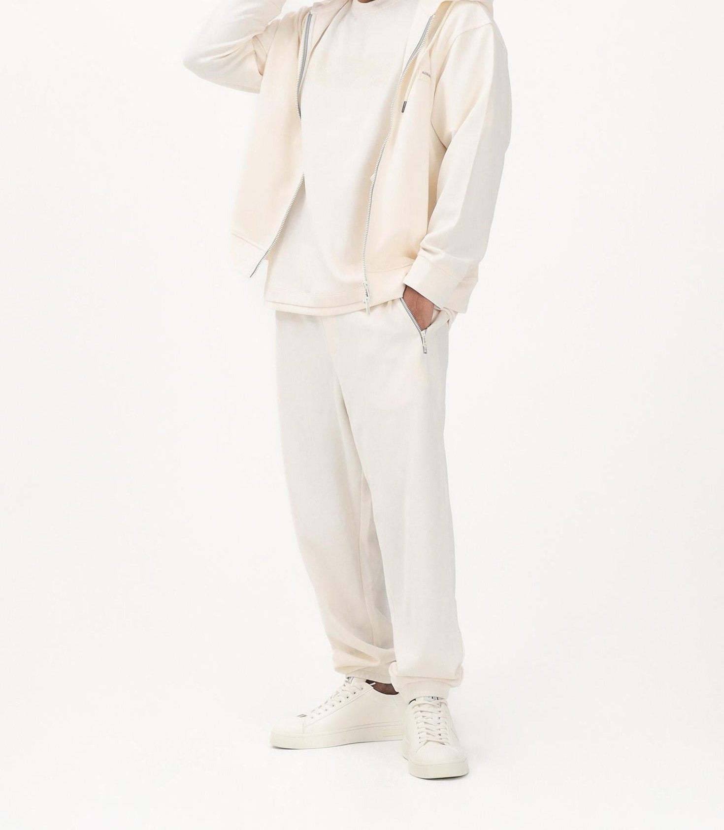 Pantalone uomo sportivo .Questi pantaloni della tuta presentano un taglio affusolato e polsini jogger, creando una silhouette fluida che si restringe gradualmente dall'alto verso il basso. La tinta unita li rende facili da abbinare a diversi outfit. Due tasche con cerniera su entrambi i lati offrono praticità e dettagli decorativi. Possono essere abbinati a top casual e sono adatti a una varietà di occasioni quotidiane