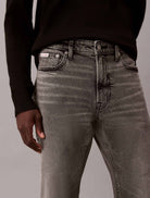 Jeans uomo modello dritto con cinque tasche chiusura con cerniera vita media
