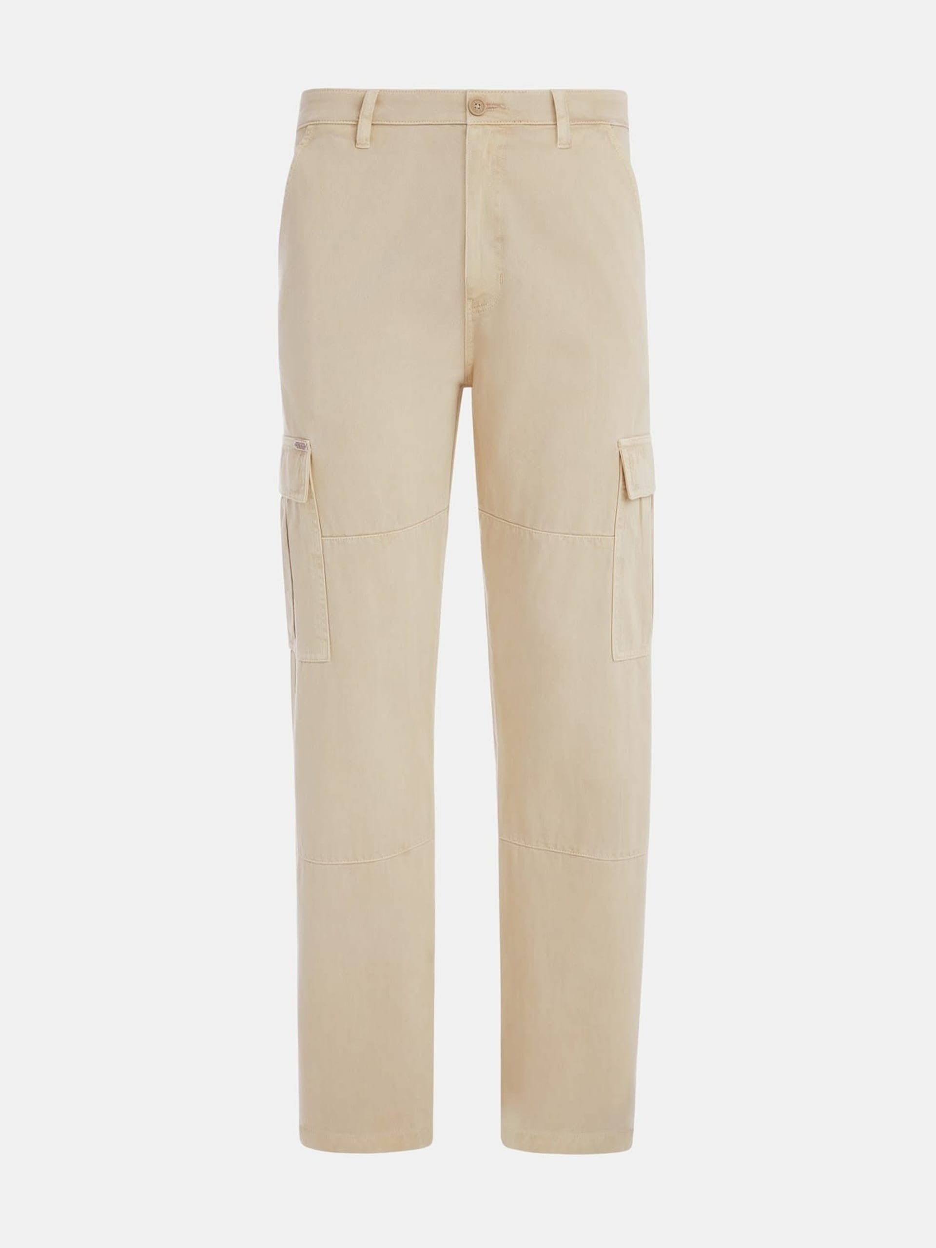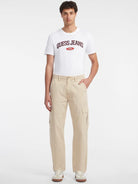 Guess Jeans Pantalone uomo Casual urbano con dettagli pratici. Pantalone cargo in twill spesso con quattro tasche. Vestibilità regular e gamba relaxed per comfort quotidiano. Il capo contiene fibre di cotone organico.