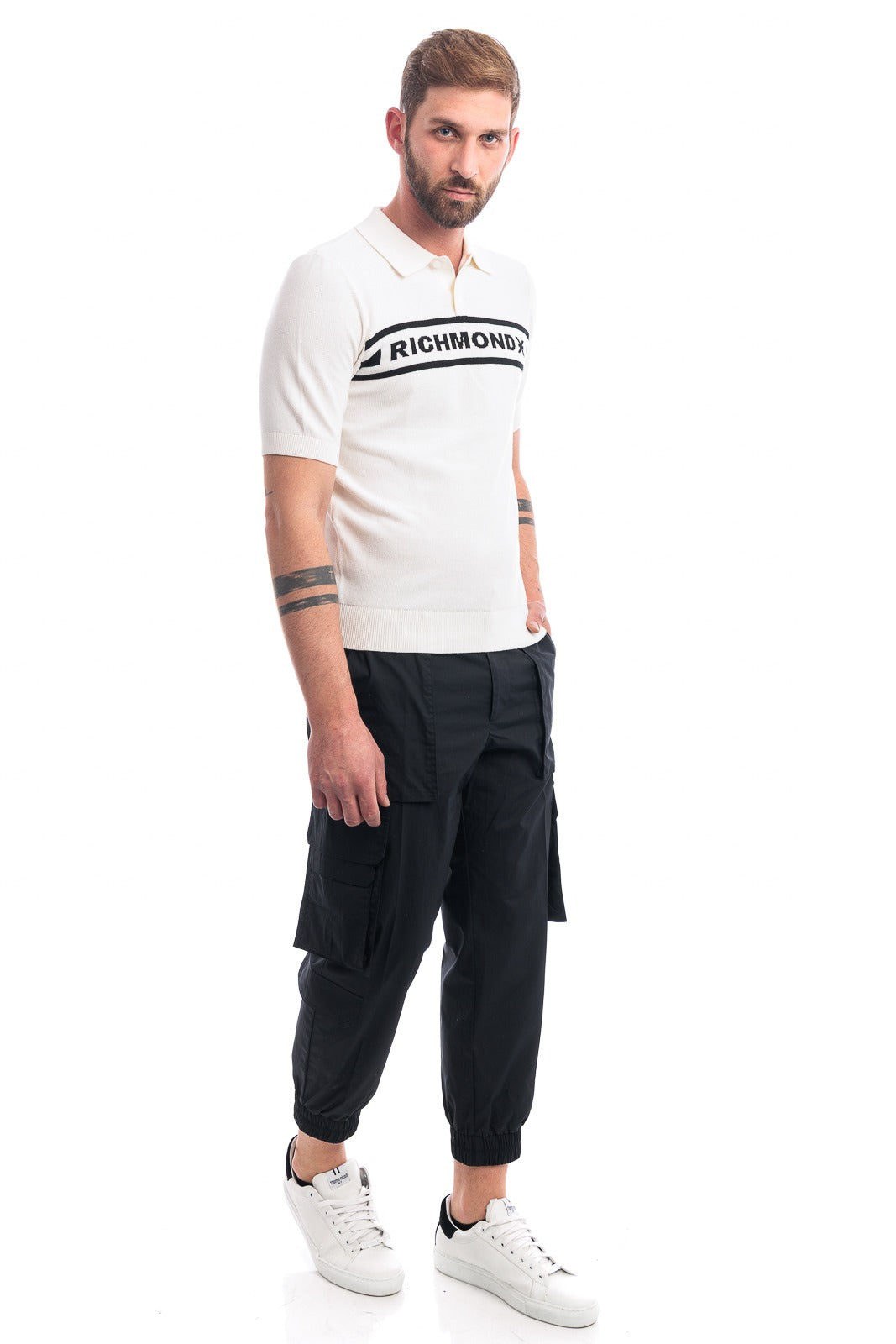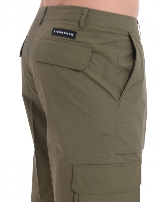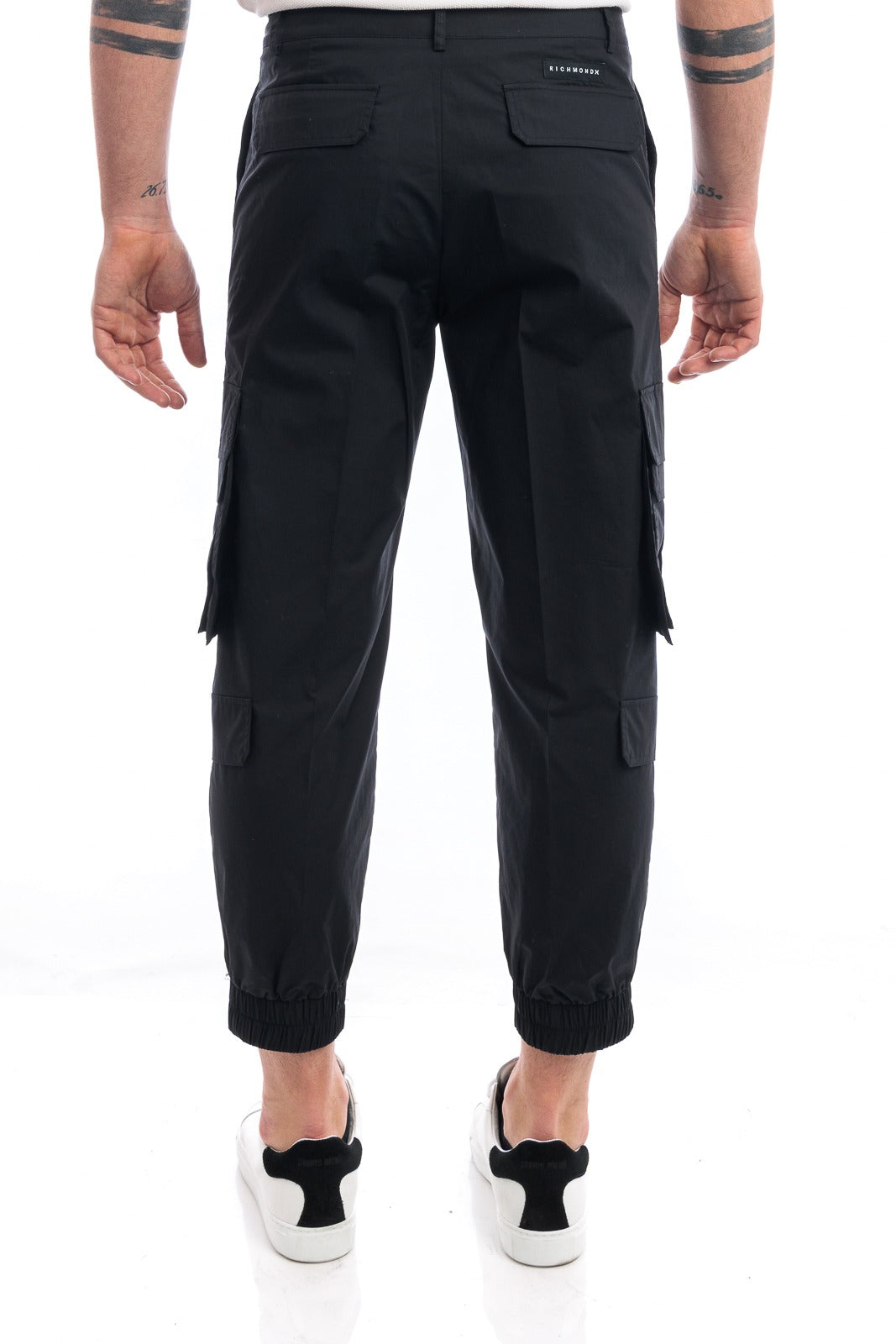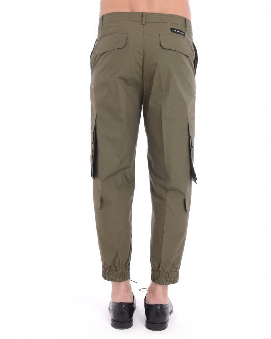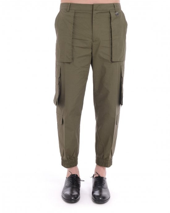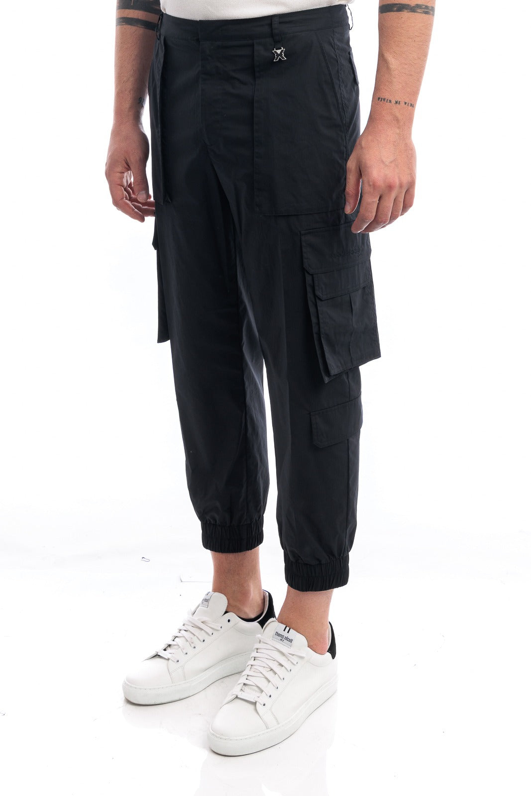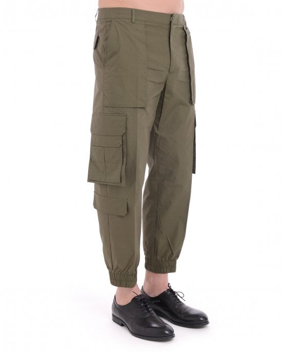 Pantalone uomo cargo, chiusura con zip e gancio, tasche laterali elastico a fondo gamba