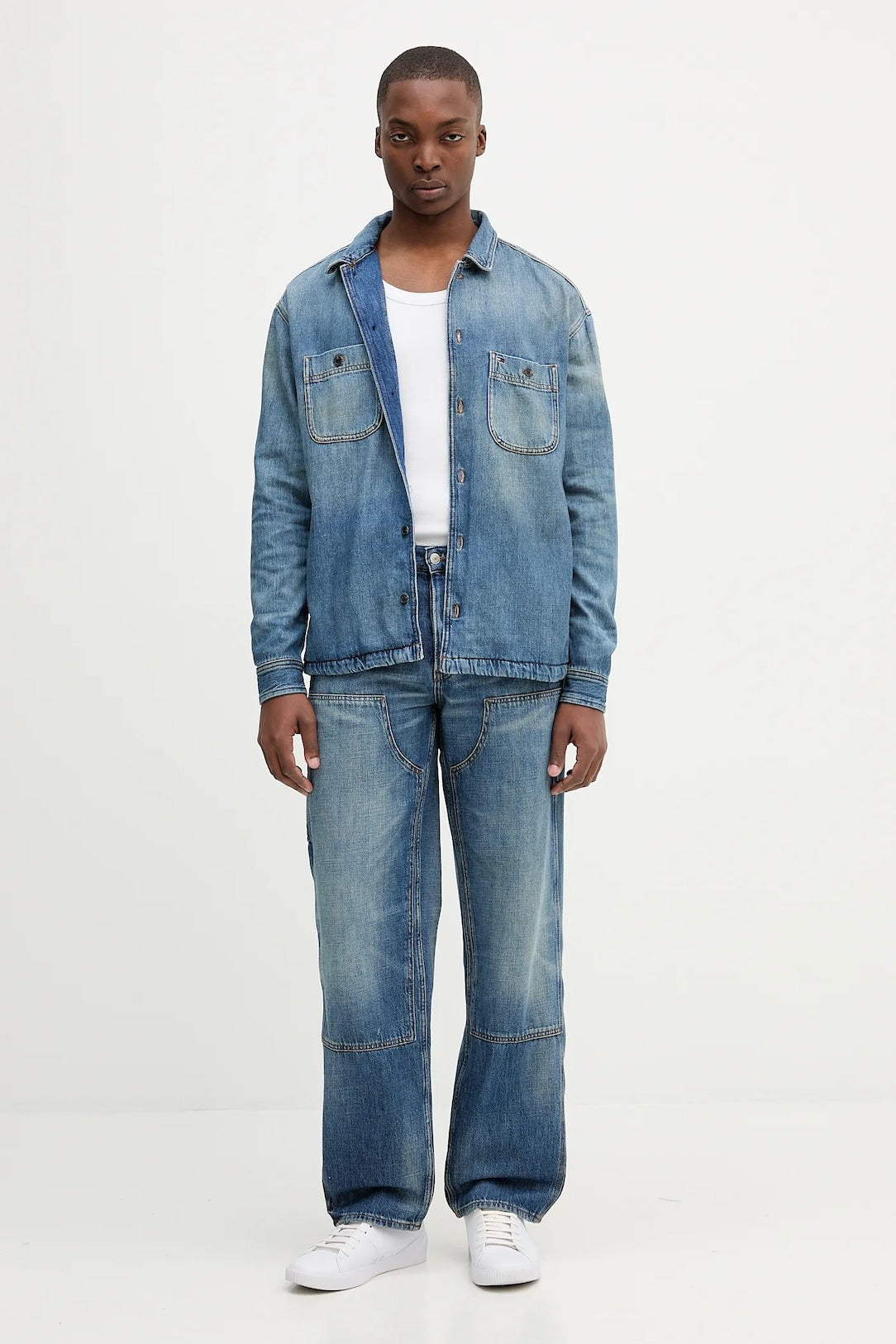 Jeans uomo trucker in denim leggero, rifinita dalle classiche tasche applicate e dai dettagli con pieghe sul davanti, si distingue per il grintoso logo ricamato sul retro. Caratteristiche principali Denim rigido Leggera Pieghe sul davanti Baffature sulle maniche Colletto semifrancese Bottoni in metallo con branding Due tasche applicate sul davanti Logo Tommy Jeans ricamato sul retro Bandierina Tommy ricamata sulla tasca Modello e vestibilità Relaxed fit Spalle leggermente scese Composizione: 100% cotone Articolo: DM0DM212031A5 Collezione A/I 2025 https://nz.tommy.com/size_guide_mens