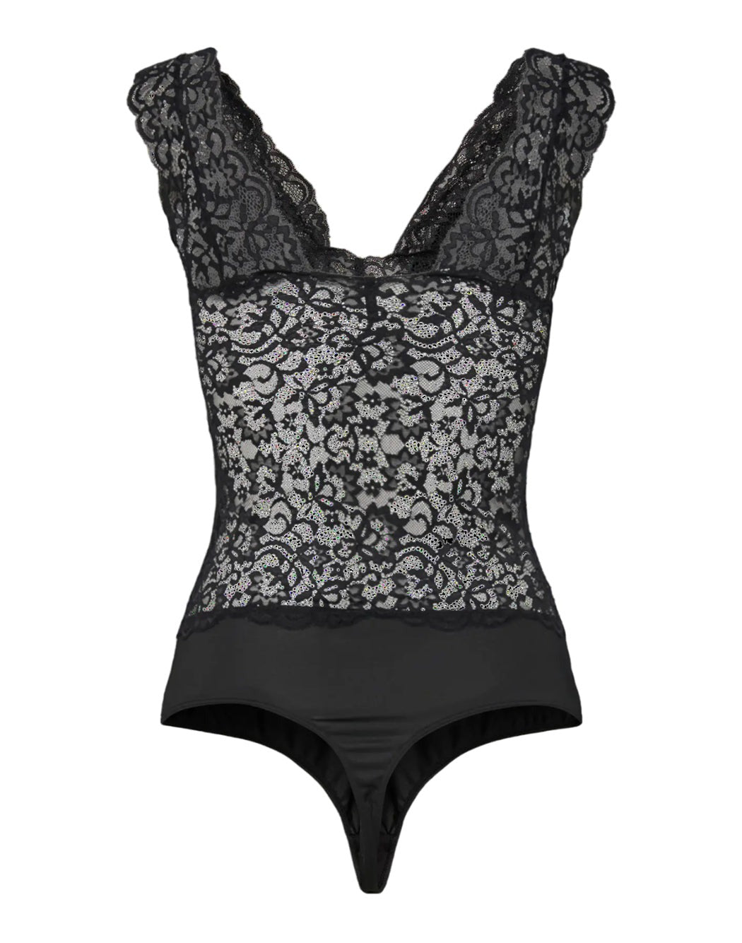 Body sotto giacca in merletto con spalline larghe scollo a V e coppe imbottite