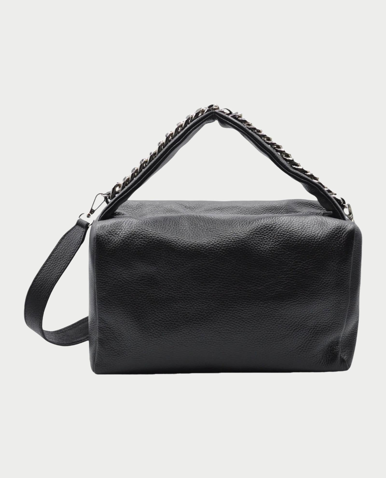Borsa donna media grandezza con manici e tracolla inserto in metallo sul manico logo frontale e chiusura con cerniera