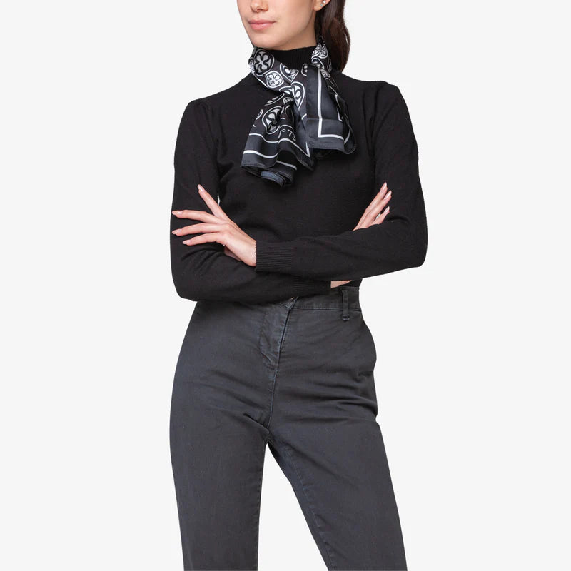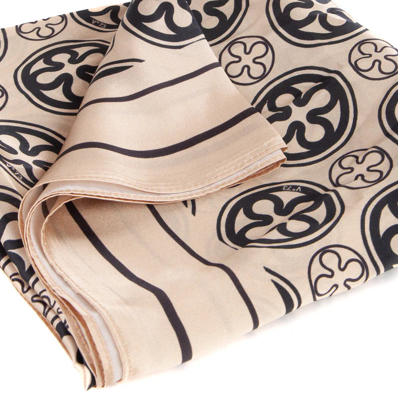 Foulard quadrato realizzato in seta con all over V73. Fascia a contrasto con logo V73.