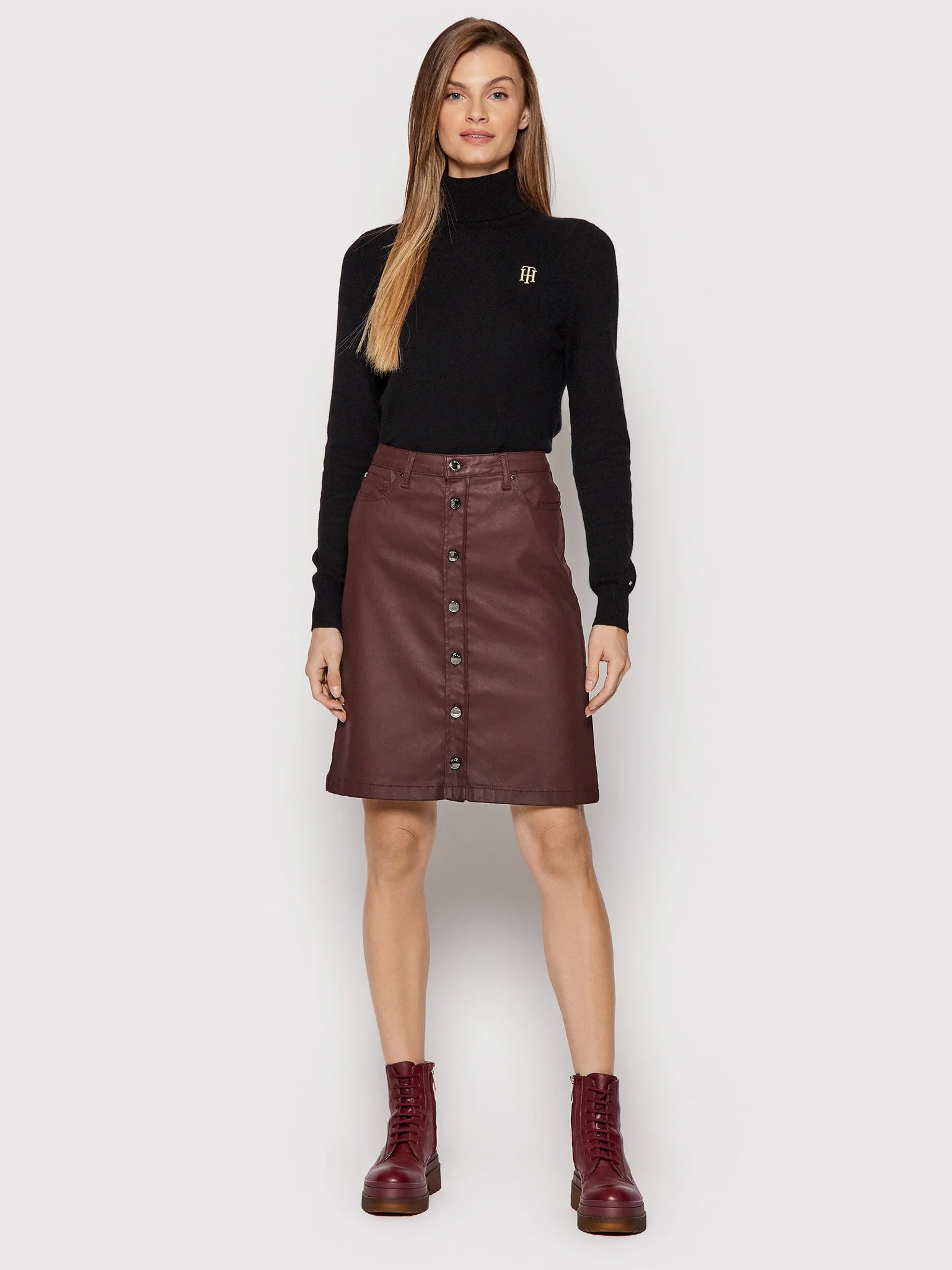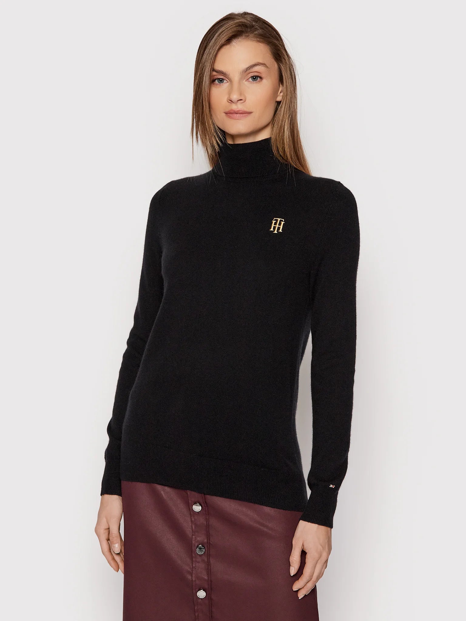 Maglia donna vestibilità regular fit dolcevita con manica lunga e dettaglio logo sul petto Composizione: 100% Cashmere riciclato Codice Articolo WWOWW31560BDS https://nz.tommy.com/size_guide_womens