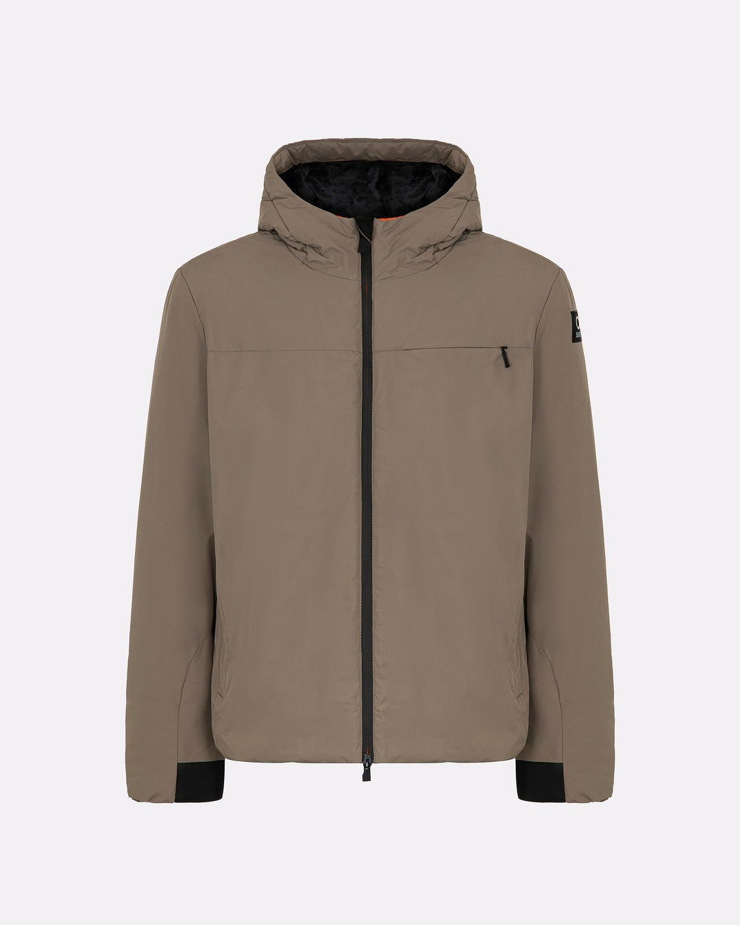 Giubbotto uomo Il giubbotto Aurelio Velour da uomo unisce un look sportivo a materiali ricercati per offrire comfort e personalità. Realizzato in tessuto tecnico effetto touch con inserti in velluto nero, presenta una fodera del cappuccio in neoprene tono su tono che aggiunge protezione e stile. La zip bicolore impermeabile con cursore doppio e interno arancione crea un contrasto grafico distintivo, mentre l’imbottitura Sorona 80gr assicura una sensazione termica leggera e costante. Completano il capo dettagli funzionali come le tasche invisibili con zip e i polsi elasticizzati.