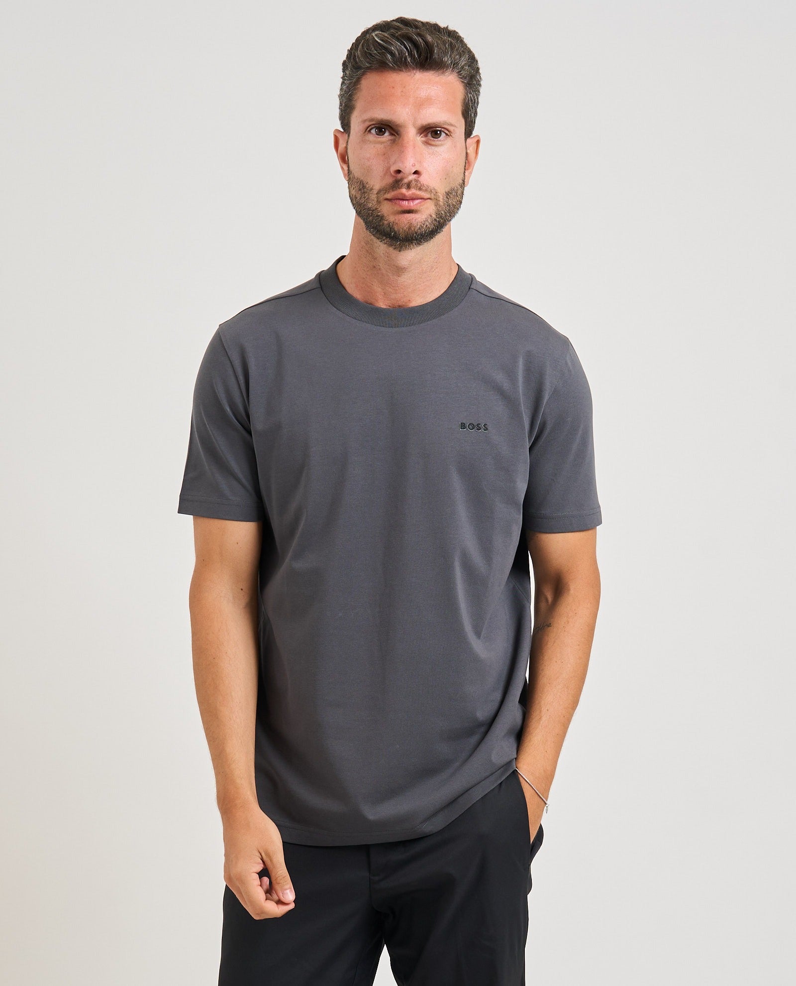 T-shirt uomo Realizzata in cotone con tessuto elasticizzato, questa T-shirt BOSS Uomo assicura il massimo comfort e flessibilità. Straight fit. Logo a contrasto sul petto.