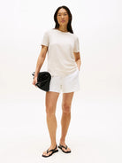 T-shirt donna in jersey di puro cotone con l'intramontabile scollatura rotonda e l'iconico logo sul petto, è un must have versatile per ogni guardaroba.