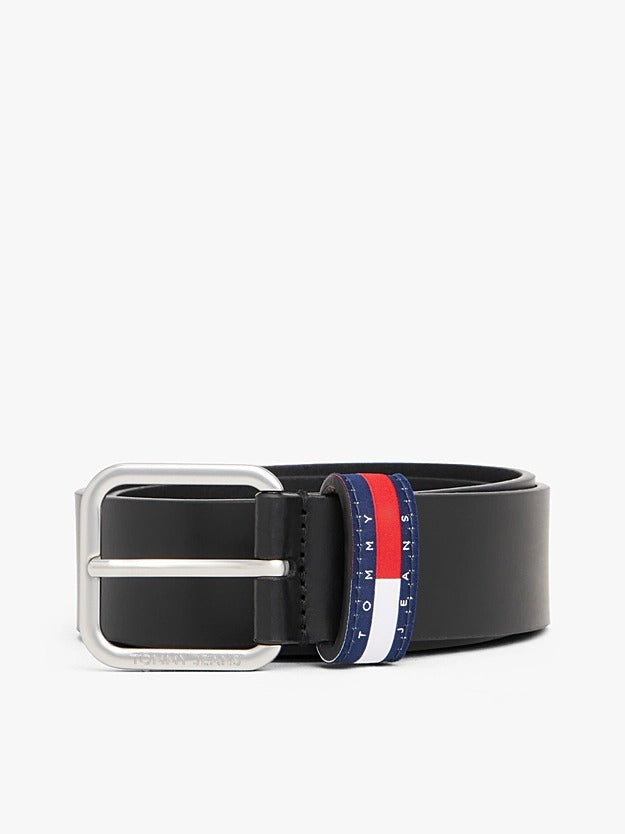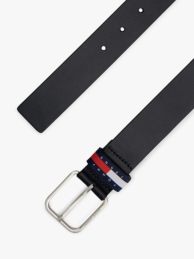 Tommy Hilfiger Jeans Cintura Ryan in Pelle con Logo e Distintivo Nero Nero